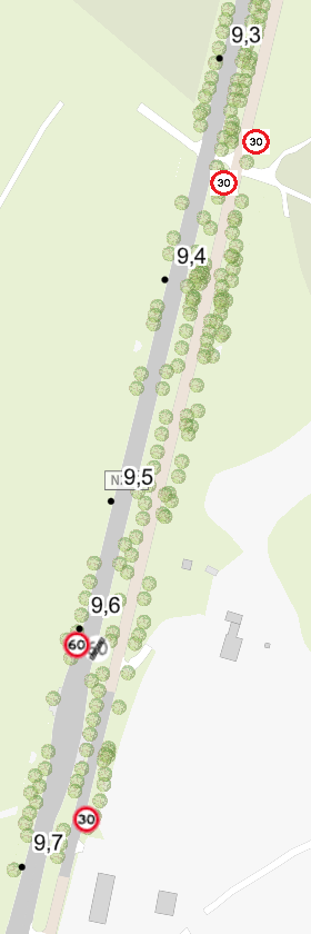Het is wenselijk dat de maximale snelheid op de gehele parallelweg tussen hmp 8.4 en hmp 9.7 30 km/uur wordt gezien het smalle wegprofiel en dit conform het netwerkperspectief is.