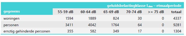 het aantal woningen met een geluidsbelasting groter dan 68 dB wordt verlaagd van 39 naar 20;