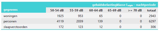 geluidsbelastingklasse Lnight [dB] | aantal slaapverstoorden [%] |