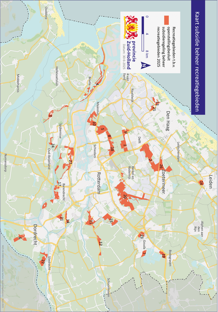 Bijlage 1 behorende bij artikel 1 van het Openstellingsbesluit beheer recreatiegebieden Zuid-Holland 2026-2029, Kaart subsidie beheer recreatiegebied