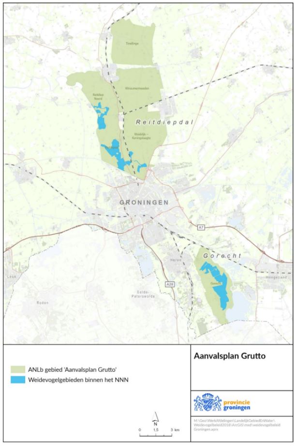 Binnen het leefgebied Open Grasland worden deelgebieden voor het Aanvalsplan Grutto onderscheiden. Voor deze gebieden worden extra middelen beschikbaar gesteld om het weidevogelbeheer op agrarische gronden te optimaliseren. Landelijk zijn ca. 35 gebieden in beeld voor het Aanvalsplan Grutto. Voor Groningen betreft dit de gebieden (zie bijlage 2):