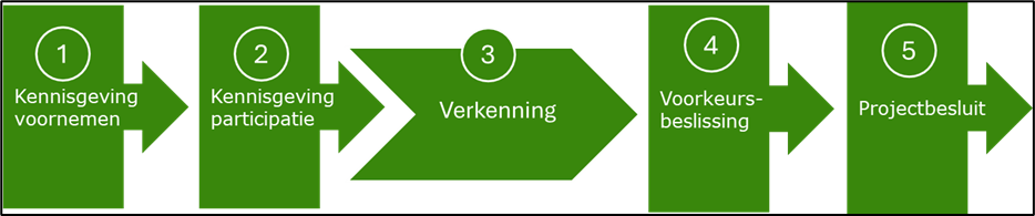 In de verkenningsfase start, volgens de aanpak zoals die in stap 2 is bepaald, het onderzoek naar de beste oplossing: het voorkeursalternatief. Bij dit onderzoek worden belanghebbenden betrokken zoals dit is bepaald in het participatieplan. De verkenning eindigt met een vergelijking van de kansrijke oplossingen en een conclusie wat de beste oplossing is, het voorkeursalternatief.