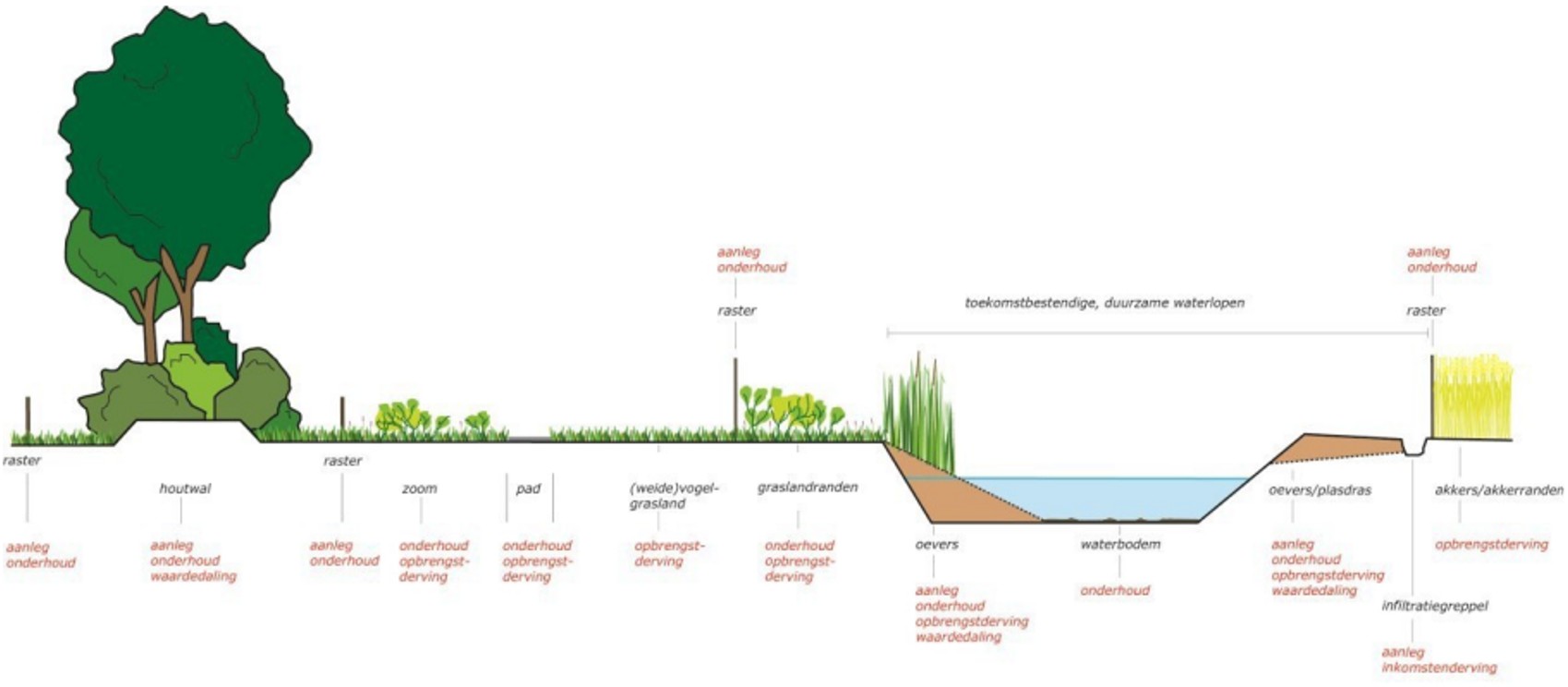 L01.01; L01.02; L01.03; L01.05; L01.06; L01.07; L01.08; L01.09; L01.16 komen voor subsidie in aanmerking, de overige landschapselementen niet.