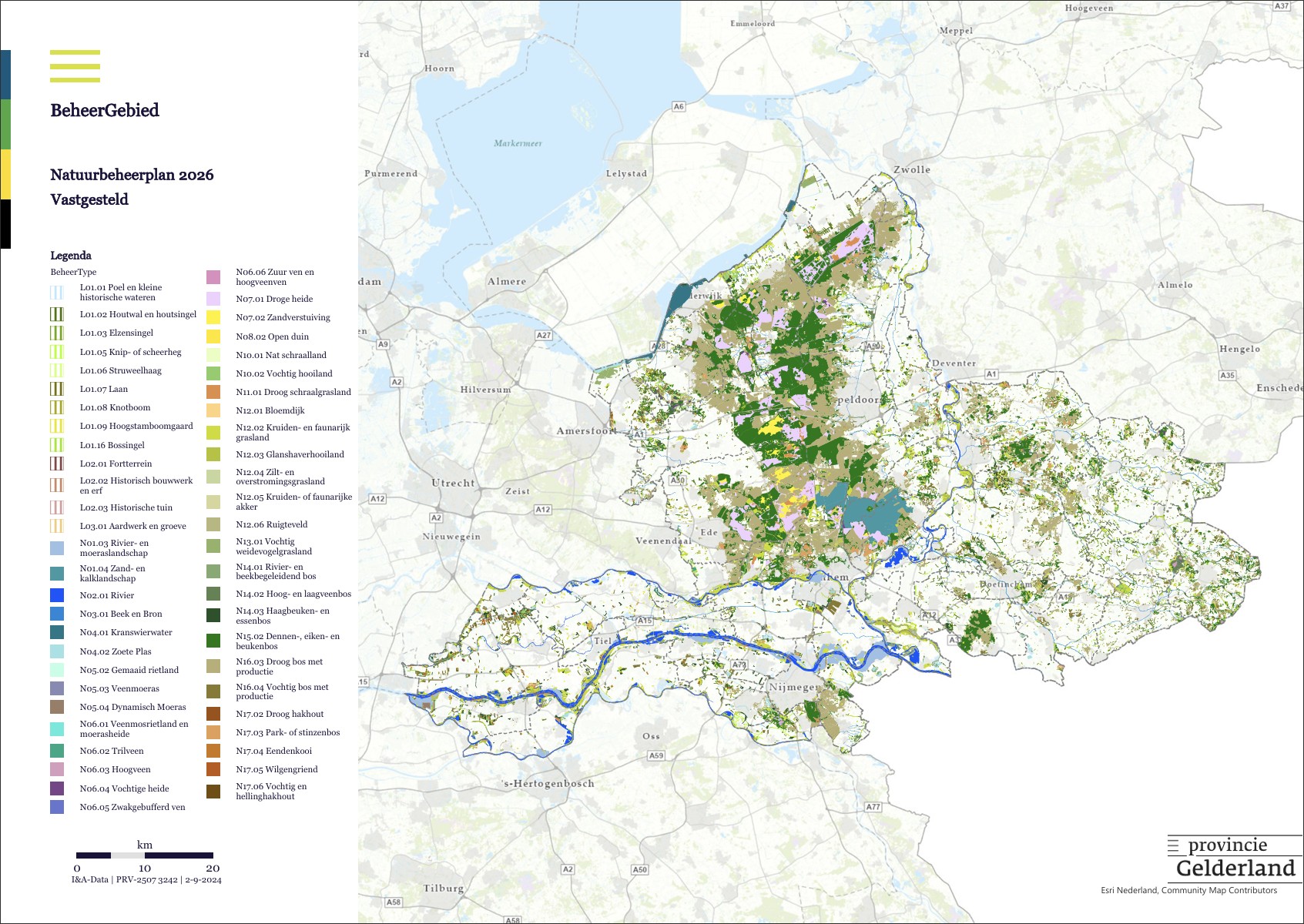 Het Natuurbeheerplan 2026 is geactualiseerd en toegespitst op de situatie in provincie Gelderland. De kaarten, die bij dit natuurbeheerplan horen, zijn leidend voor de uitvoering van het natuurbeheer. Ze geven aan waar welk type beheer mogelijk is en vormen de basis voor subsidietoekenning en monitoring. De kaarten zijn geactualiseerd om aan te sluiten bij de actuele situatie in het veld.