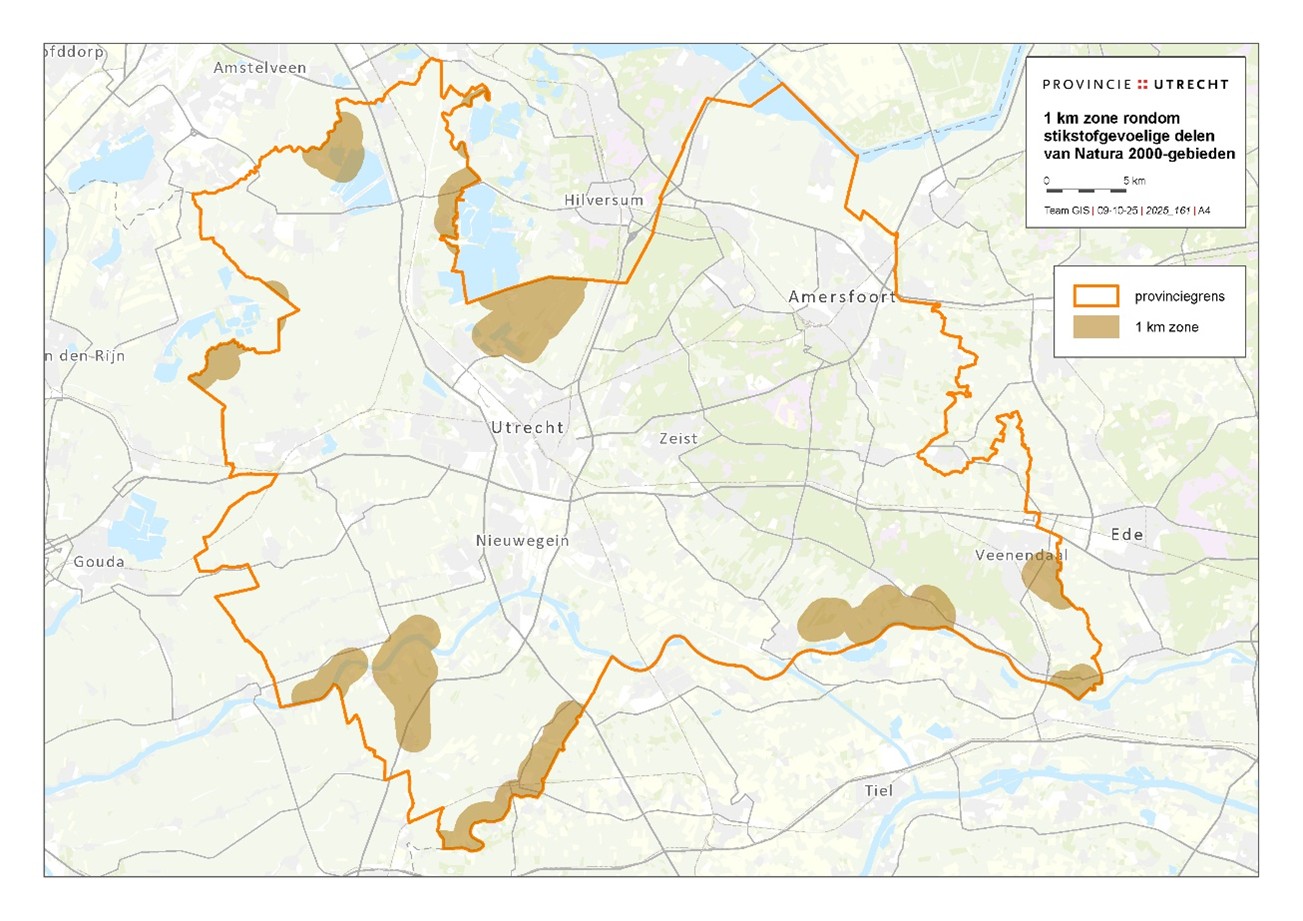 Subsidie op grond van deze regeling kan worden verstrekt aan een veehouderijonderneming die is gelegen in de provincie Utrecht, geheel of gedeeltelijk binnen een zone van 1000 meter rondom de stikstofgevoelige delen van de Natura 2000-gebieden, overeenkomstig de geografische gebiedsafbakening, zoals aangegeven op de kaart die is bijgevoegd als bijlage 3.