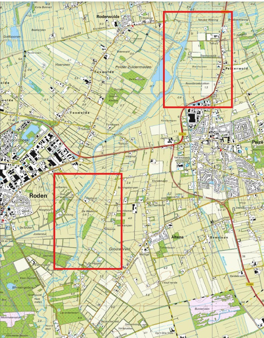 Probleemgebied: beekdalherstel van het Peizerdiep tussen vistrap (nabij Roden) en fietsbrug de Bommelier (nabij Roderwolde).