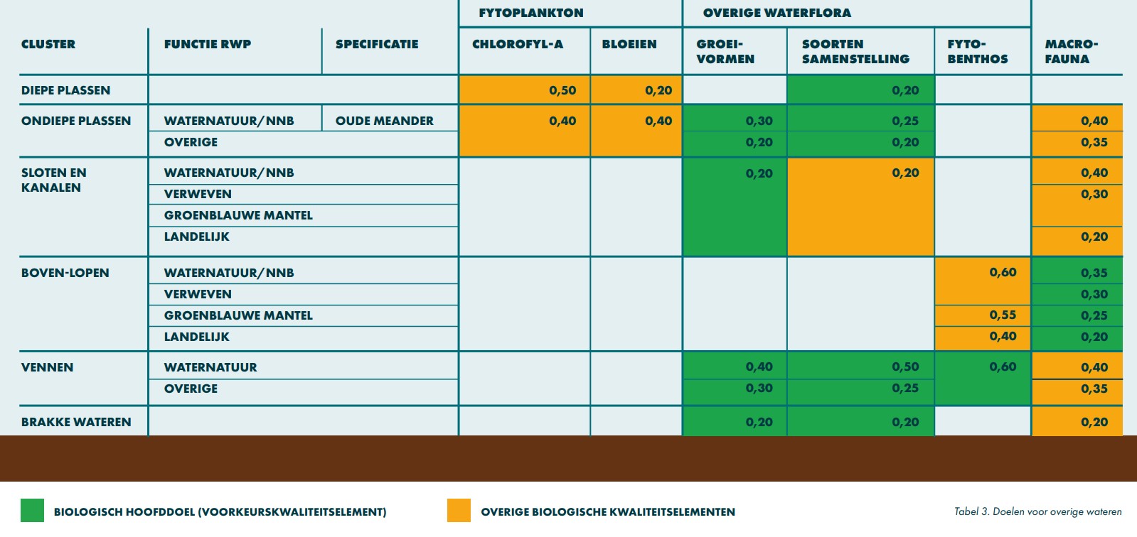 Voor wat betreft het doelbereik van de Kaderrichtlijn Water (KRW) in 2027 is inmiddels duidelijk dat dit niet zonder meer in zicht is. Op verschillende overheidsniveaus wordt er gewerkt aan het uitbreiden van het maatregelenpakket om de doelen van de Kaderrichtlijn Water (KRW) te behalen. Het Rijk komt eind 2024 met een landelijke tussenevaluatie hierover. Op basis hiervan, en in aanvulling op het addendum-RWP, werken de Provincie Noord- Brabant en de Brabantse waterschappen aan de KRW-impuls Brabant waarin wordt bekeken hoe het Brabantse KRW-maatregelenpakket uitgebreid en aangescherpt kan worden om de KRW-doelen voor 2027 en verder te halen. Eventuele aanpassingen van het provinciale beleid ten behoeve van KRW-doelbereik zullen worden verwerkt in een nieuw Regionaal Water- en Bodem Programma voor de volgende planperiode (2028-2033).