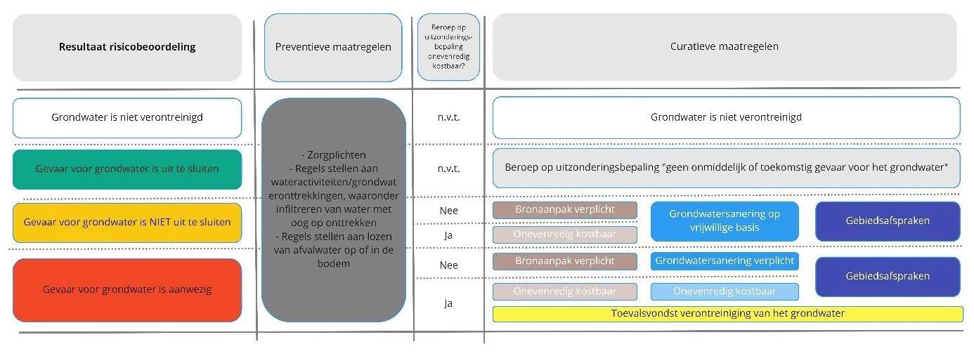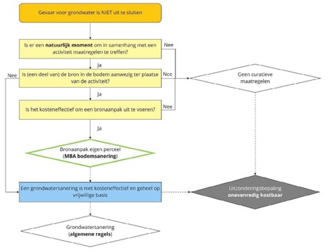 Een grondwatersanering als maatregel kan volgen uit het uitvoeren van de risicobeoordeling grondwaterkwaliteit bij het bouwen op een mobiele verontreinigingssituatie. Een grondwatersanering kan ook volgen uit het aanwijzen van een toevalsvondst van verontreiniging van het grondwater. De sanering is in dat geval gericht op het beheersen van het risico voor het grondwater en kan zich ook beperken tot bijvoorbeeld monitoring van het grondwater.