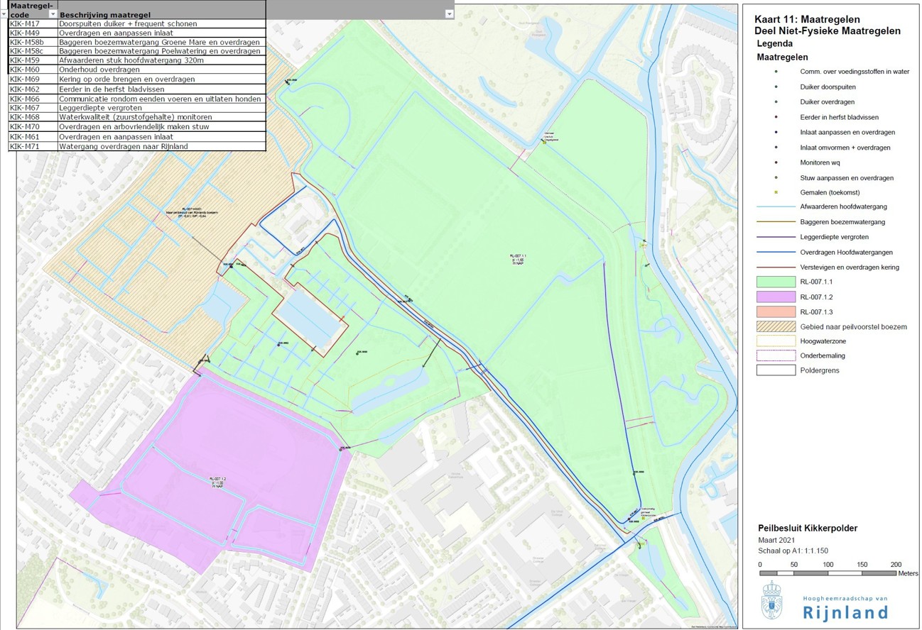 De fysieke maatregelen ten behoeve van het Watergebiedsplan én de Overdracht POAA in de Kikkerpolder zijn weergegeven in onderstaande tabel en de Kaart in bijlage 4 (detail rondom huidige twee gemalen).