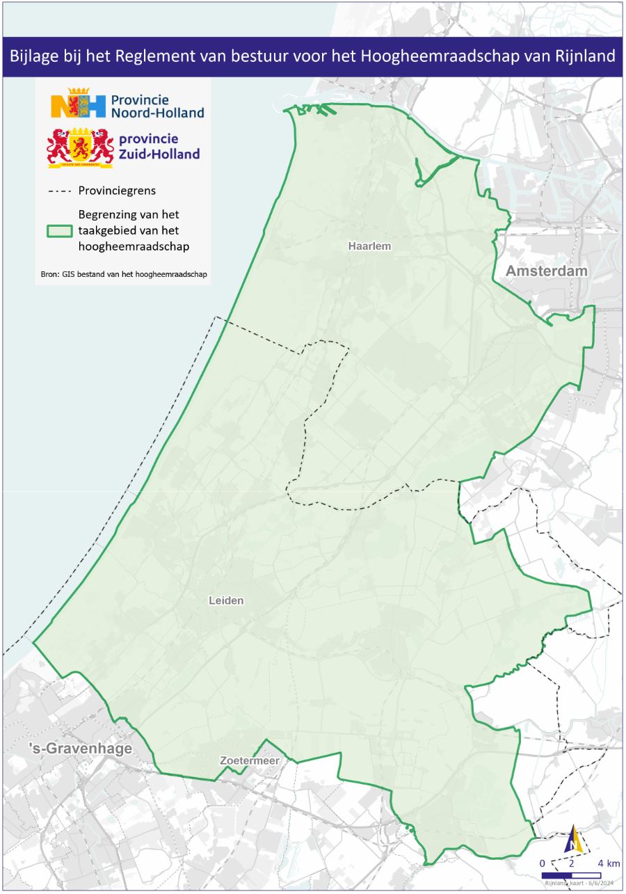 De kaart bij het reglement van bestuur, waarop het beheergebied van het Hoogheemraadschap van Rijnland is aangegeven, moet op enkele punten worden aangepast. Het gaat hierbij om grenswijzigingen die zijn afgestemd met de naburige waterbeheerders Waterschap Amstel, Gooi en Vecht en Rijkswaterstaat, directie West-Nederland Noord. In samenspraak zijn nieuwe conceptgrenzen bepaald, die het gevolg zijn van ruimtelijke ontwikkelingen of voortvloeien uit geldende wet- en regelgeving al dan niet in combinatie met in het verleden gemaakte bestuurlijke afspraken. Afgesproken is dat de wijzigingen met ingang van 1 januari 2025 worden geeffectueerd.