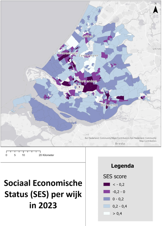 Bijgaande kaart geeft de sociaaleconomische status per wijk in Zuid-Holland weer bij het eerste lid van artikel 9.