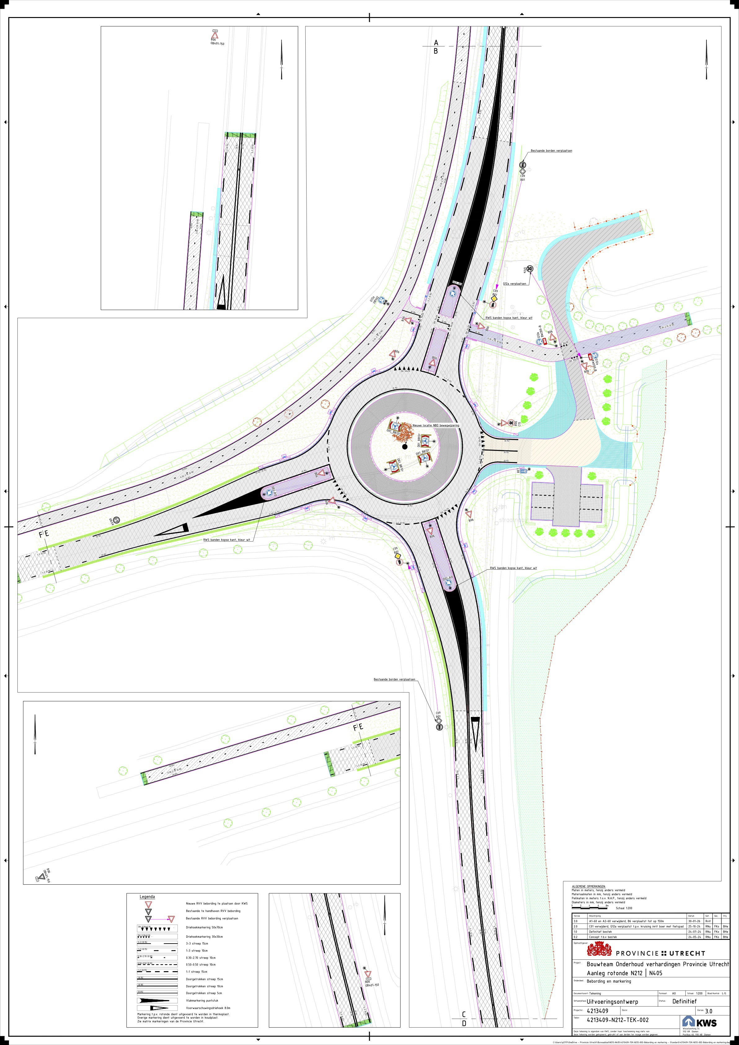 De volgende maatregelen worden uitgevoerd op het kruispunt van de provinciale weg N212/N405: