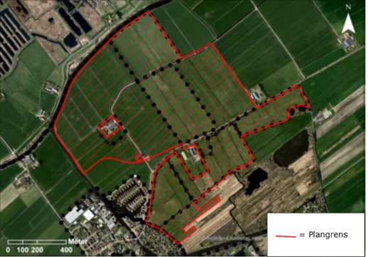 Binnen het plangebied van 120 hectare, zoals weergegeven in figuur 1, wordt gezocht naar de juiste plek om de opgave te realiseren. Het gaat hierbij om het inrichten van 74 hectare moerasgebied. De bestemming van deze 74 hectare wordt met het projectbesluit omgezet van agrarisch naar natuur.