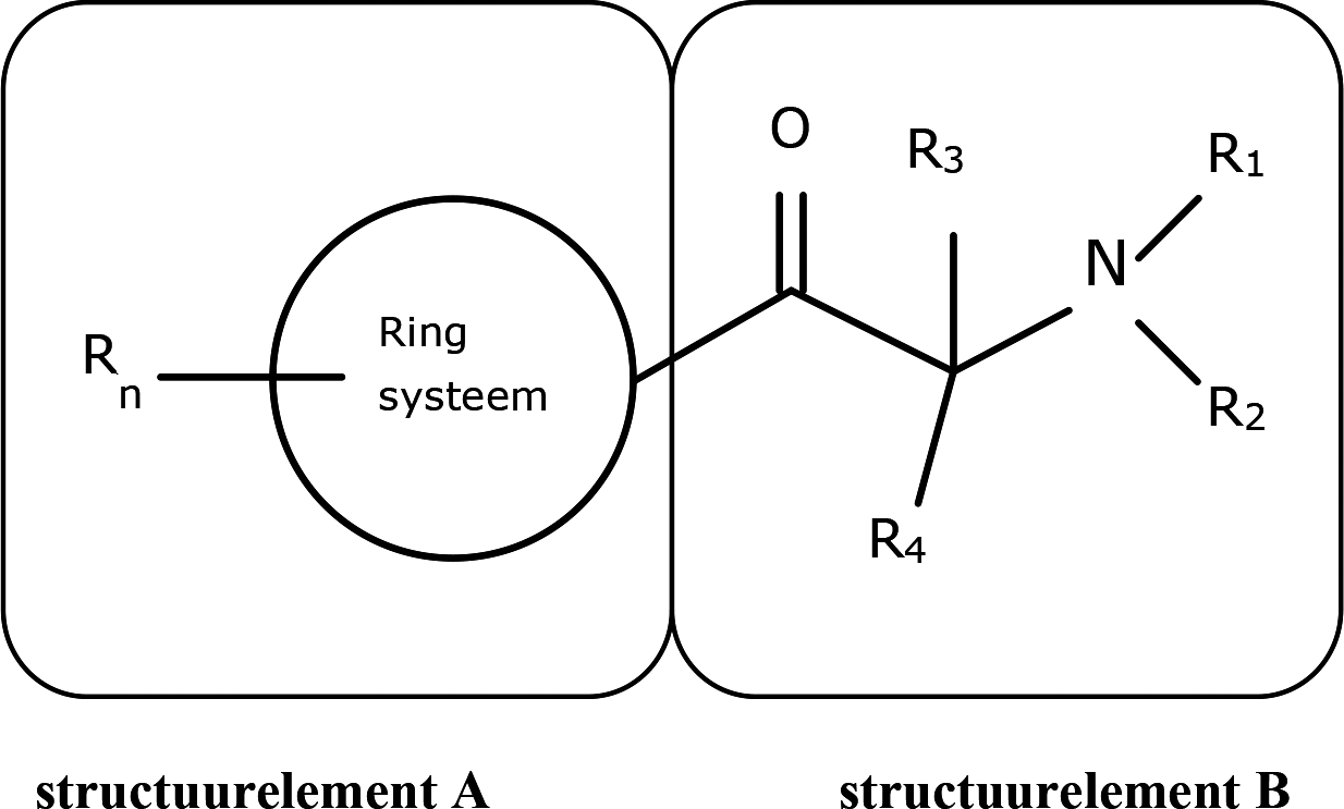 Een ringsluiting waarbij het stikstofatoom deel uitmaakt van structuurelement B is ook mogelijk.
