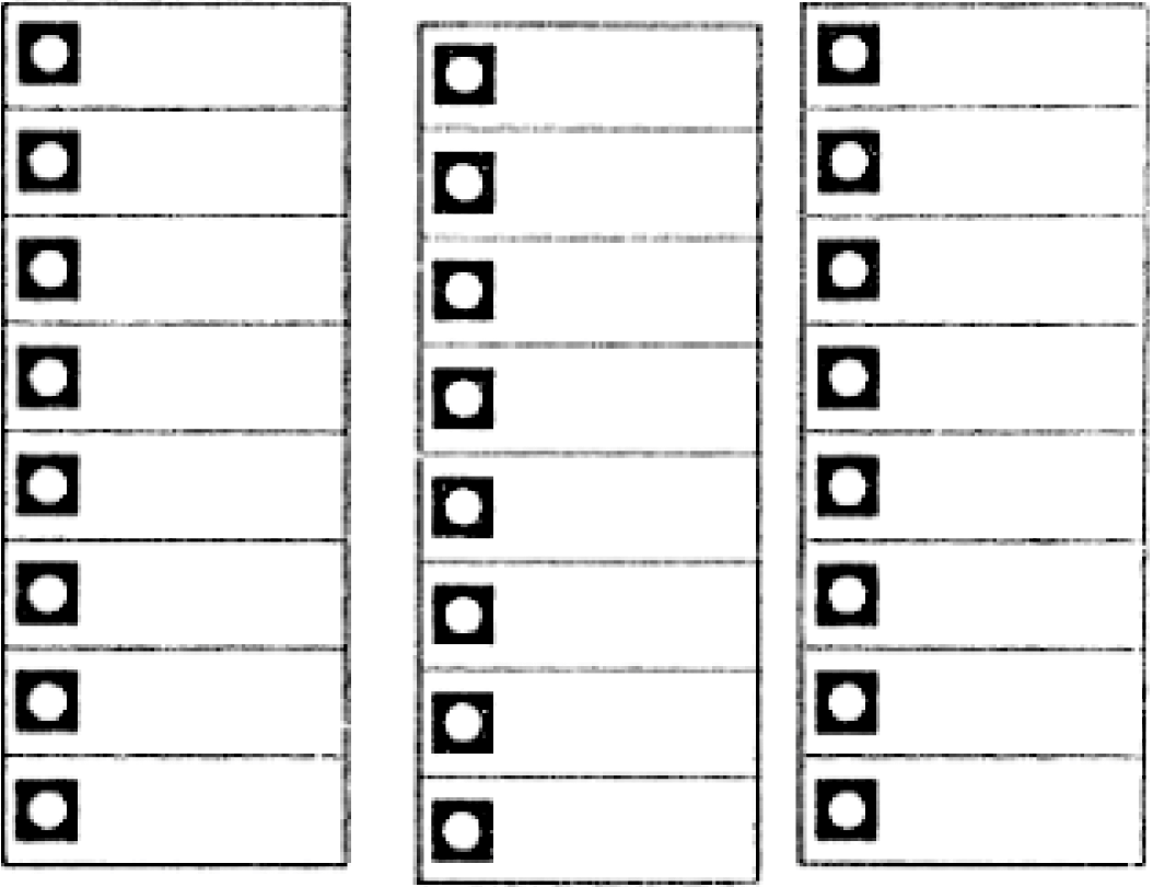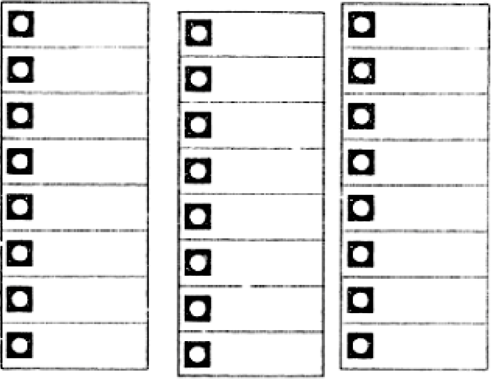 De lijsten dienen om en om in te springen. Tussen de lijsten dient ruimte te worden gelaten. Indien op een lijst meer dan vijftig namen zijn geplaatst, mogen de namen van de kandidaten op de eenenvijftigste en volgende plaats worden vermeld aan de voet van de volgende kolom. In dat geval dienen boven die kolom het nummer van de lijst en de eventuele aanduiding van de politieke groepering te worden geplaatst. Bovendien wordt in dat geval boven de naam van de eerste kandidaat van die kolom het woord ’vervolg’ geplaatst. De lijsten dienen in één rij te worden geplaatst of in meer rijen onder elkaar. In laatstbedoeld geval dienen de rijen zo te worden geplaatst dat tussen de langste lijst van een rij en de lijstnummers van de volgende rij ruimte wordt gelaten.