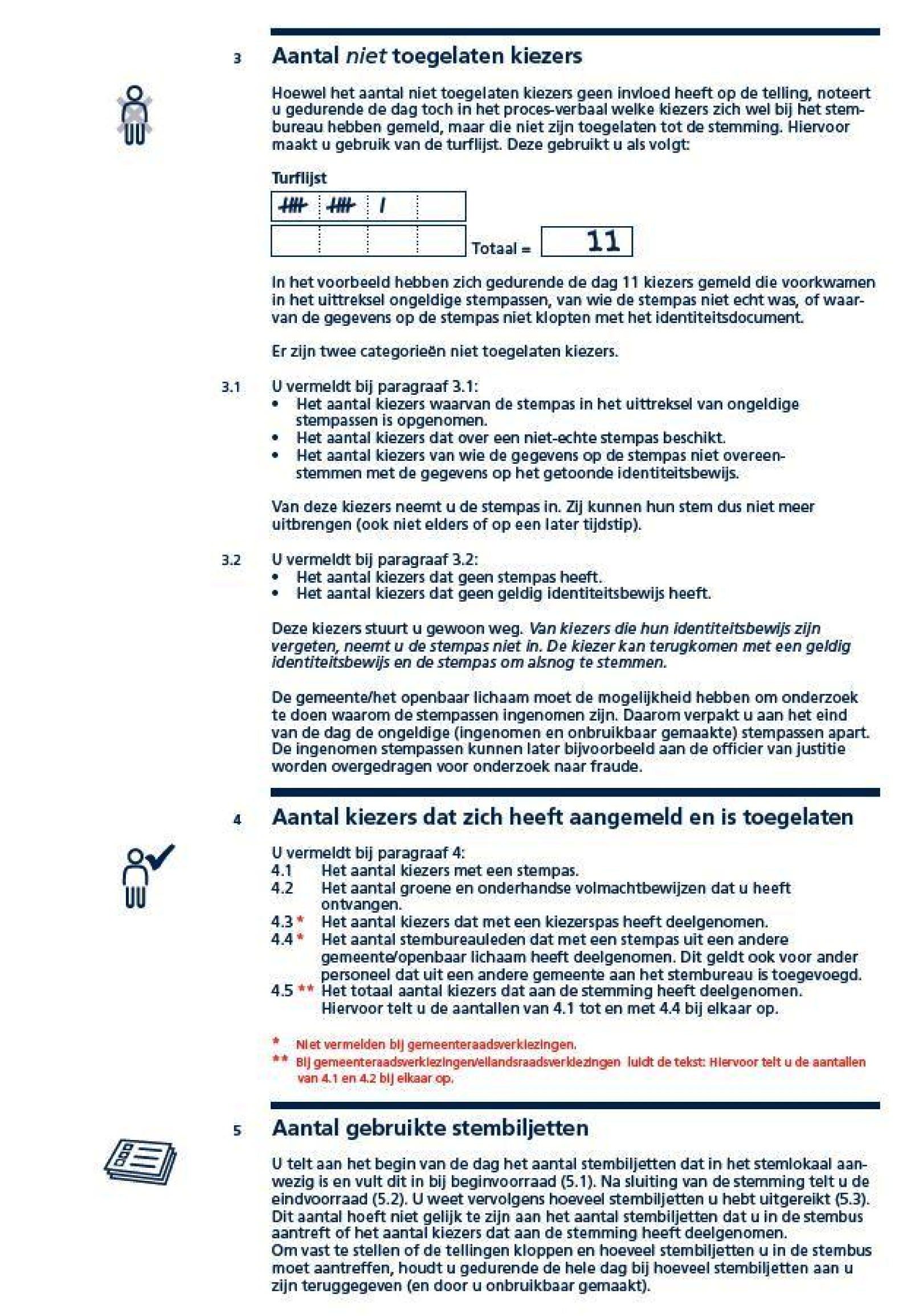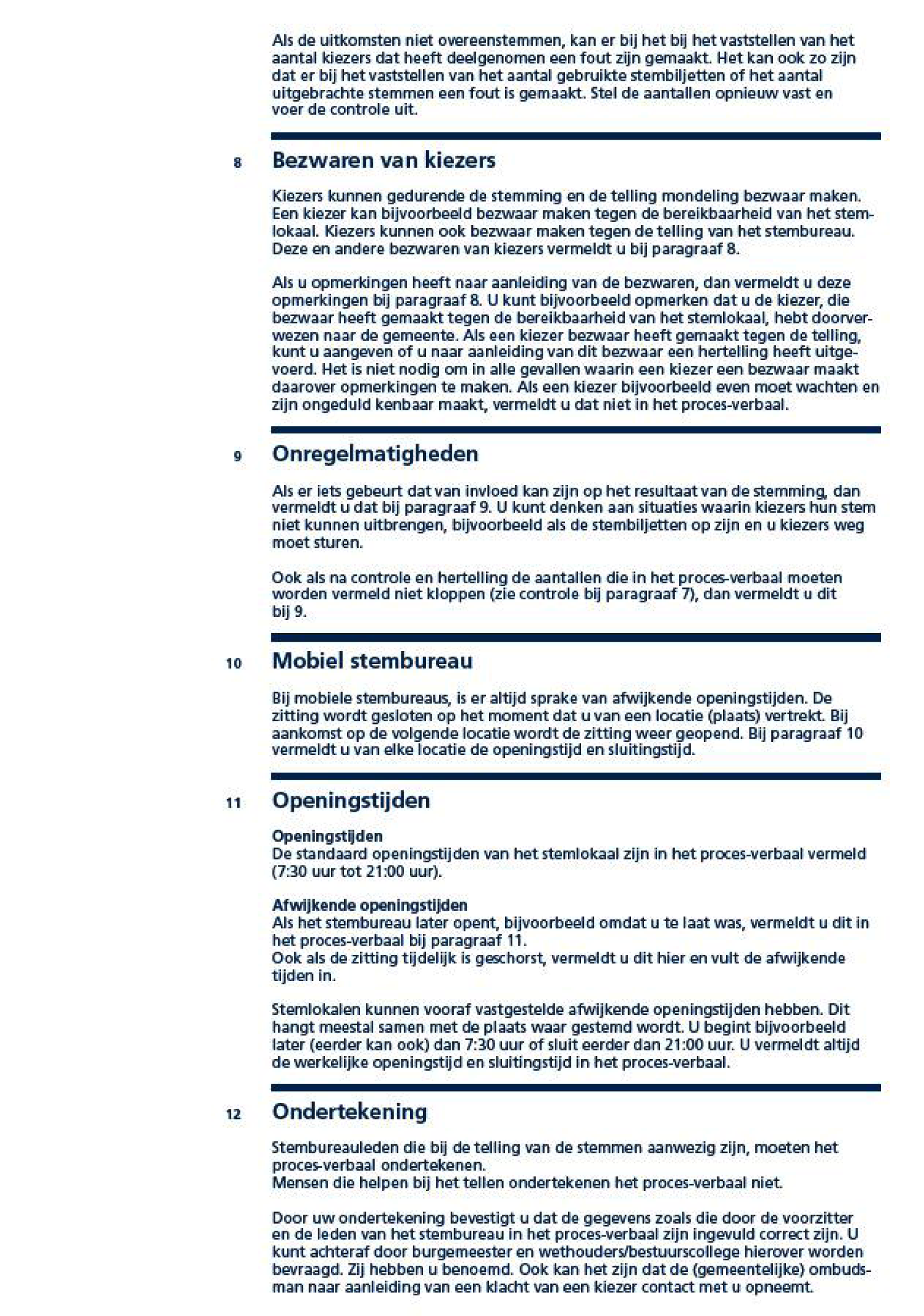 Indien de stemopneming in een briefstembureau buiten Nederland gemeten naar Nederlandse tijd eerder aanvangt dan in Nederland of een briefstembureau in Den Haag vóór 21:00 uur de stemopneming aanvangt wordt de zinsnede ‘De voorzitter heeft medegedeeld’ vervangen door: Het stembureau heeft vastgesteld.