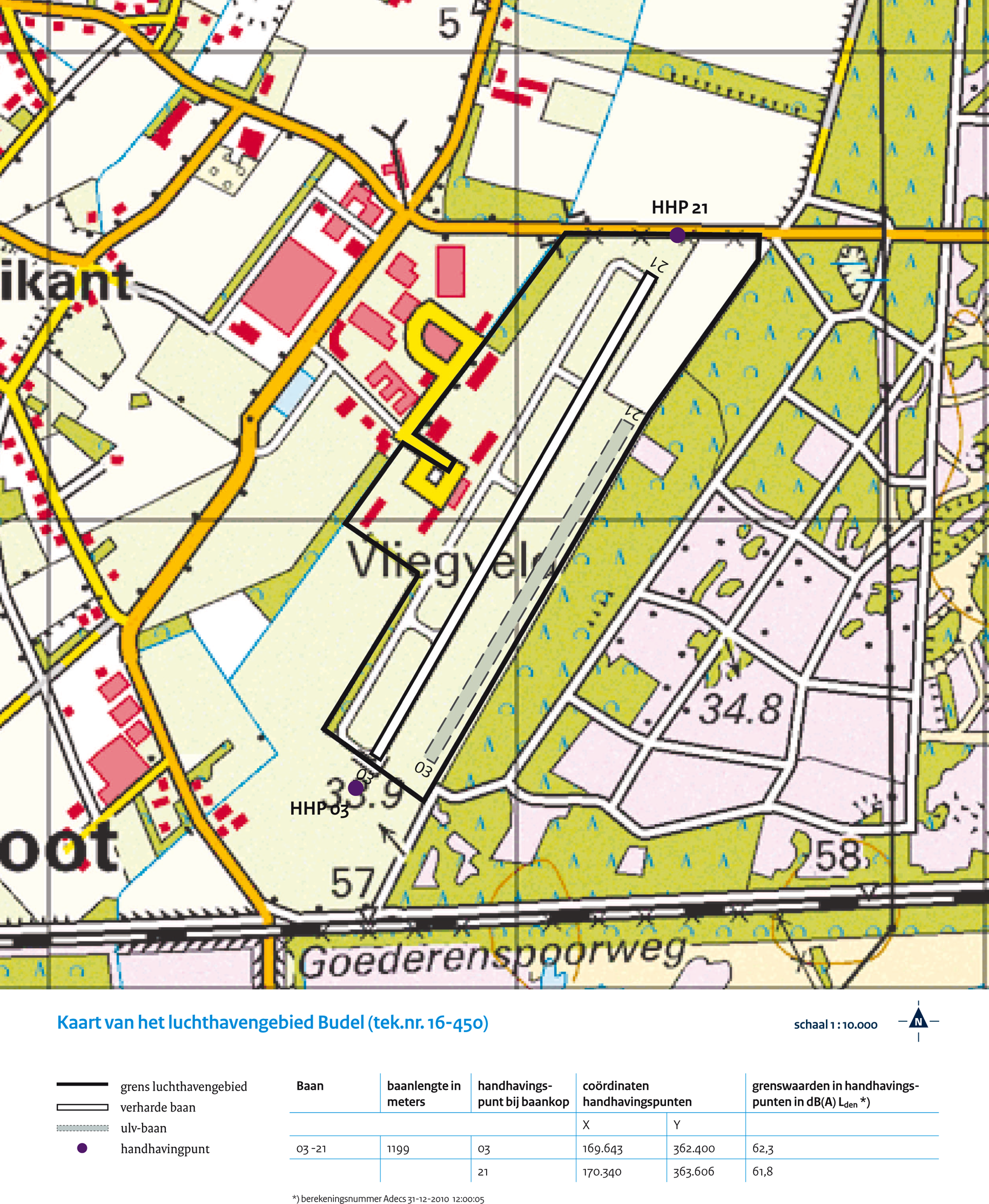 De ligging van de handhavingspunten, bedoeld in artikel X, eerste lid, van de wet, en de grenswaarden voor de geluidbelasting op die punten, zijn opgenomen op de kaart onderscheidenlijk in de tabel in bijlage 1 bij deze regeling.