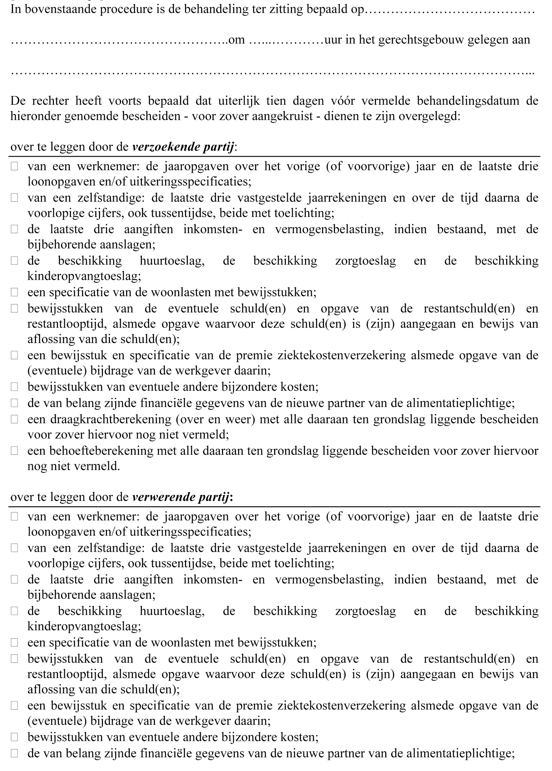 De rechtbank zal vervolgens binnen twee weken een oproep voor een nadere zitting verzenden of partijen de datum van de beschikking meedelen. De datum van de beschikking wordt vermeld in het elektronisch familiejournaal. Partijen en andere procesdeelnemers die niet door een advocaat worden vertegenwoordigd, worden van deze beslissing schriftelijk op de hoogte gesteld.