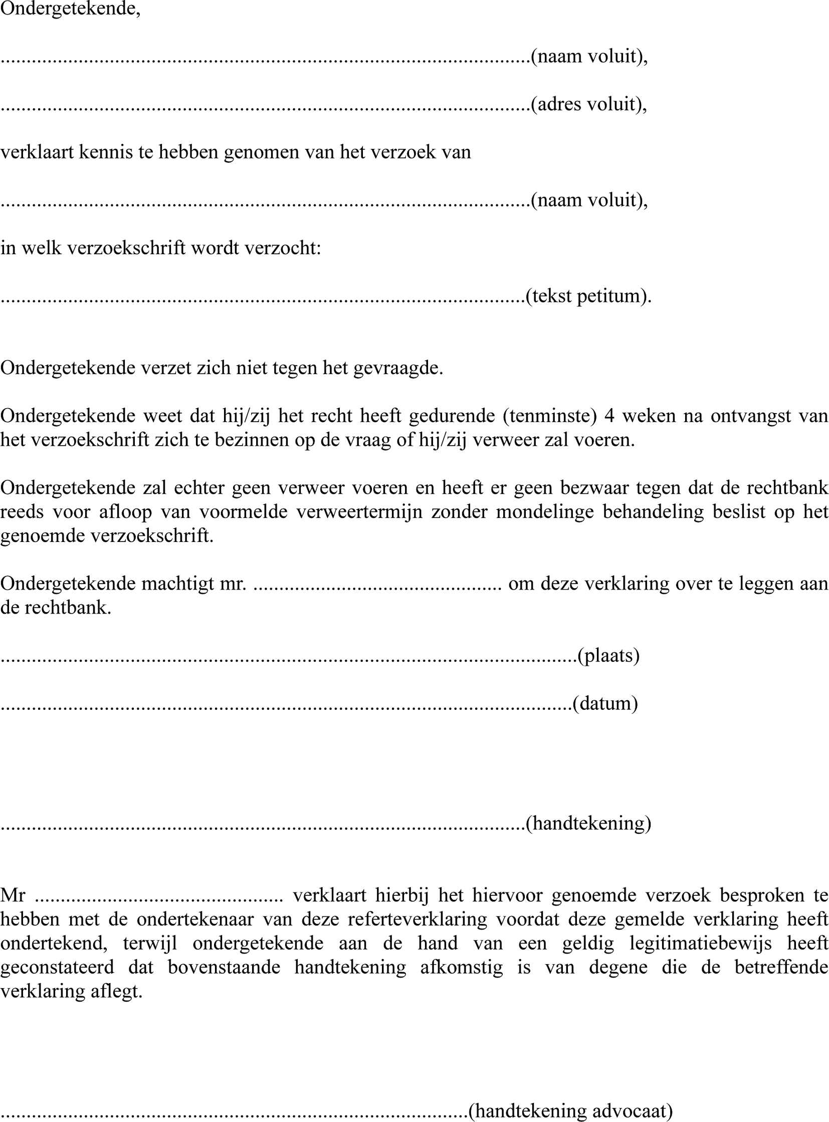 5.1.3 De oproeping wordt verzonden aan verzoeker(s) en belanghebbende(n) voor wie zich geen advocaat heeft gesteld.