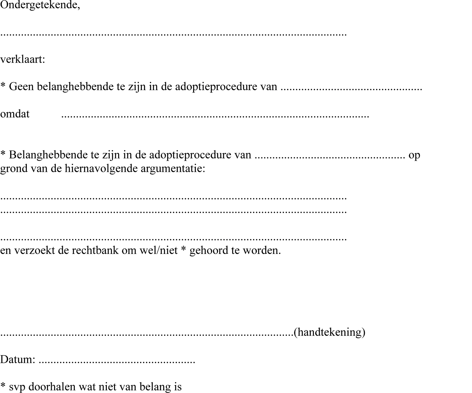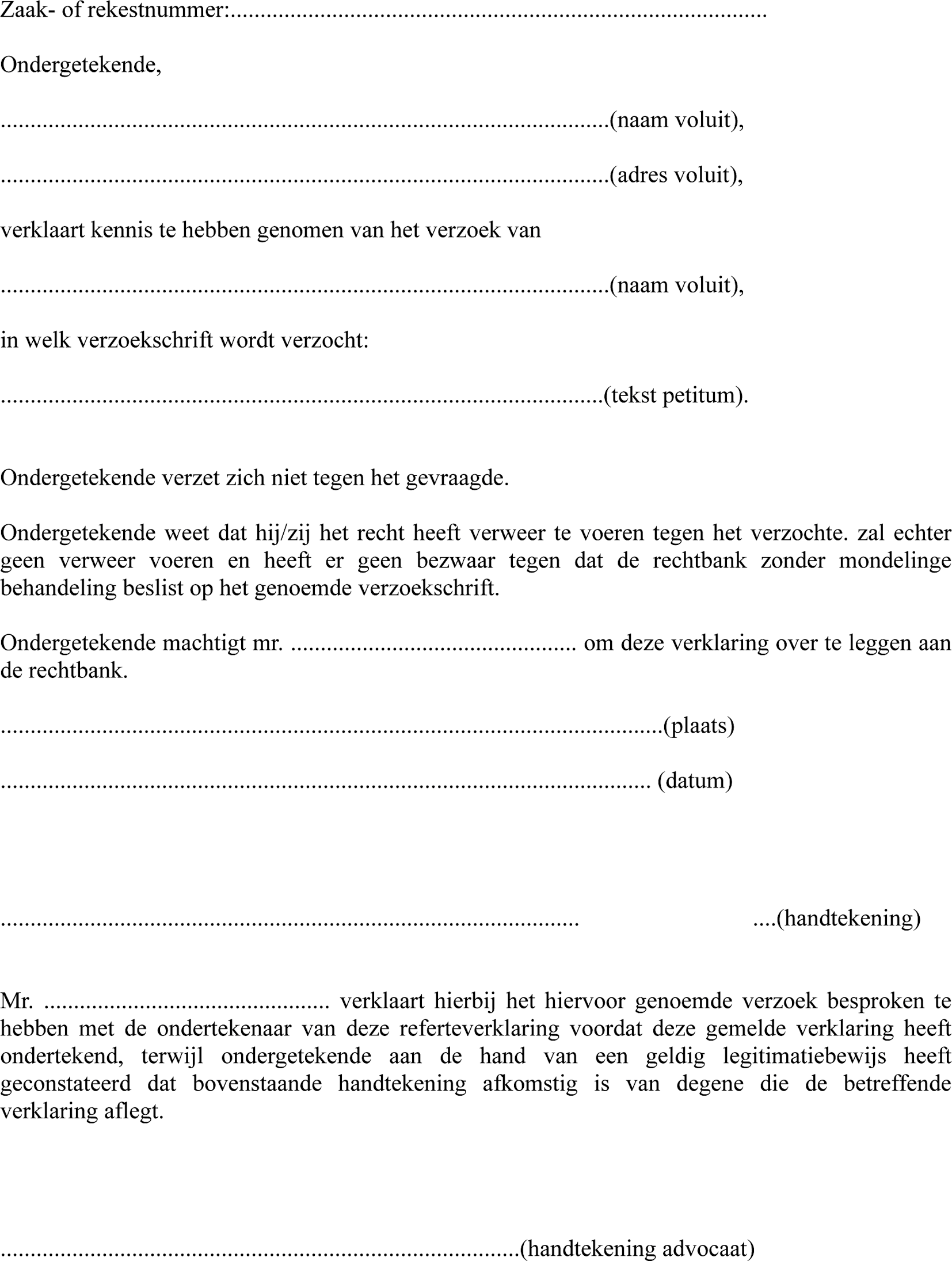 In bovenstaande procedure is de behandeling ter zitting bepaald op ..... om ..... uur in het gerechtsgebouw gelegen aan .....