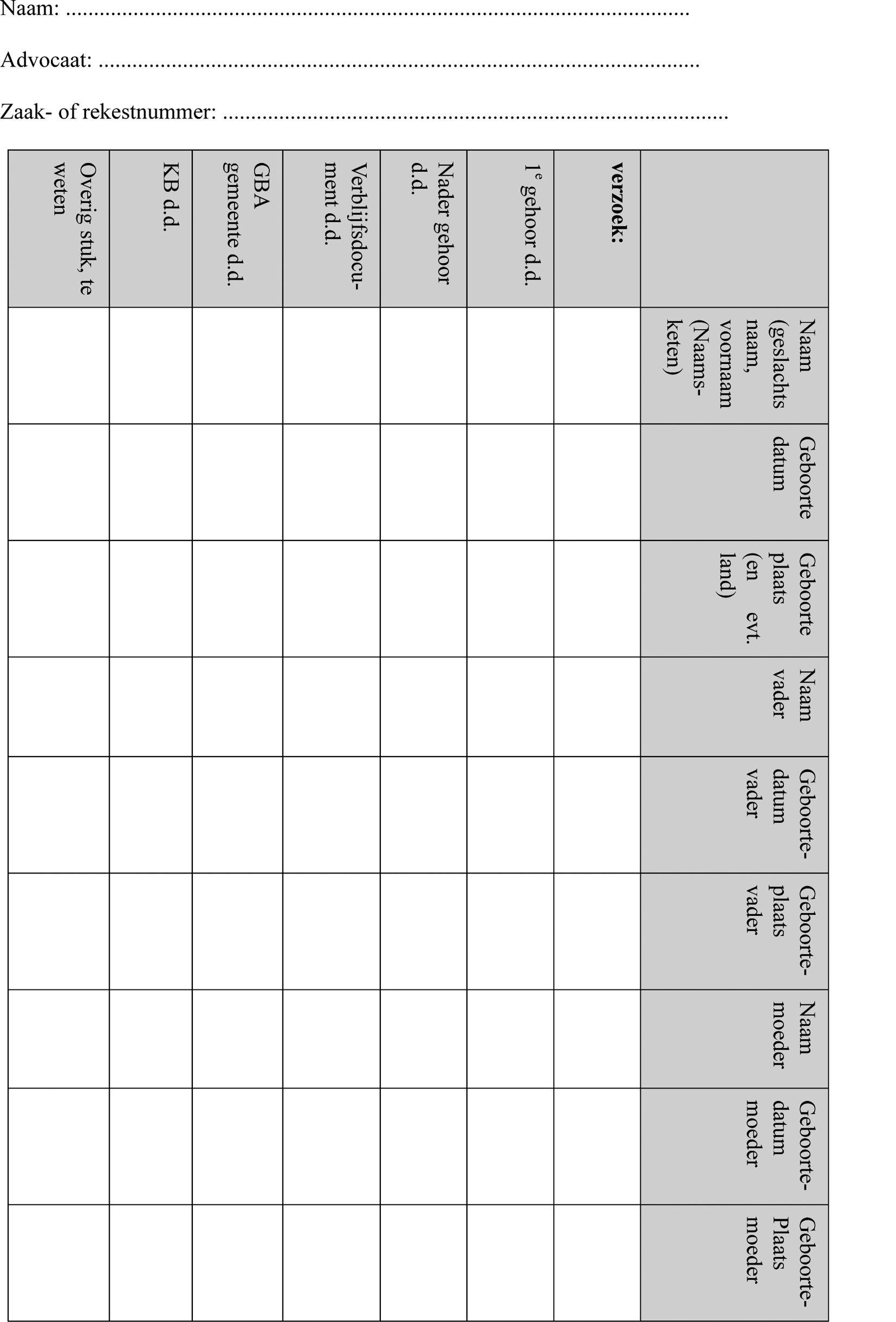 b. bescheiden betreffende de gronden waarop de rechter ingevolge de EG-verordening 2201/2003van de Raad van 27 november 2003 rechtsmacht heeft, te weten van elk van partijen een GBA-uittreksel met vermelding van adres en nationaliteit(en) en zo nodig de verblijfsduur in Nederland. Indien geen GBA-registratie heeft plaatsgevonden dienen andere bewijsstukken ten aanzien van de nationaliteiten, de gewone verblijfplaats en de eventuele verblijfsduur te worden overgelegd. De genoegzaamheid daarvan staat ter beoordeling van de rechter.