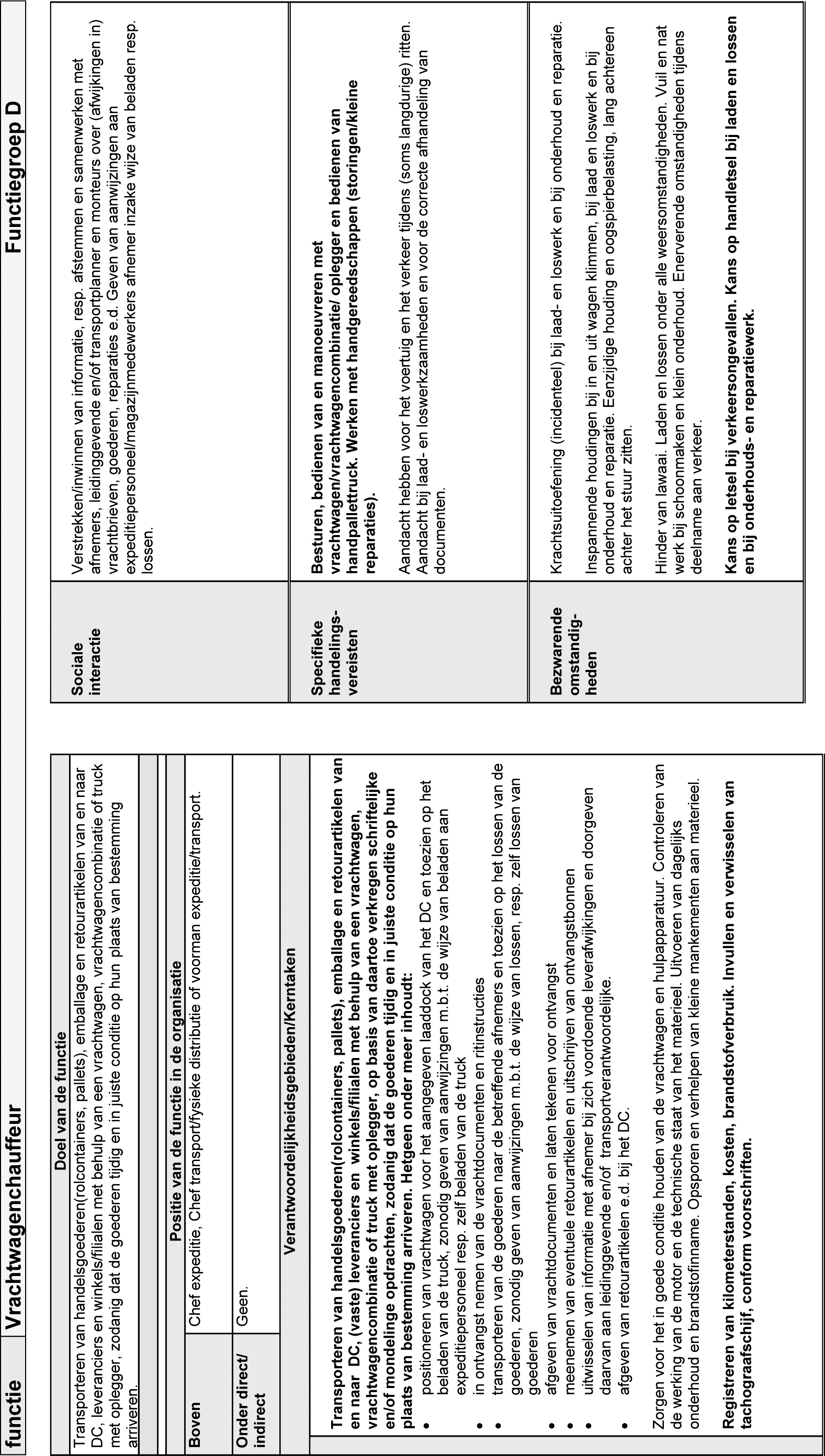 • Lichamelijke inspanning/massa • Lichamelijke inspanning/houding • Werkomstandigheden • Persoonlijk risico |