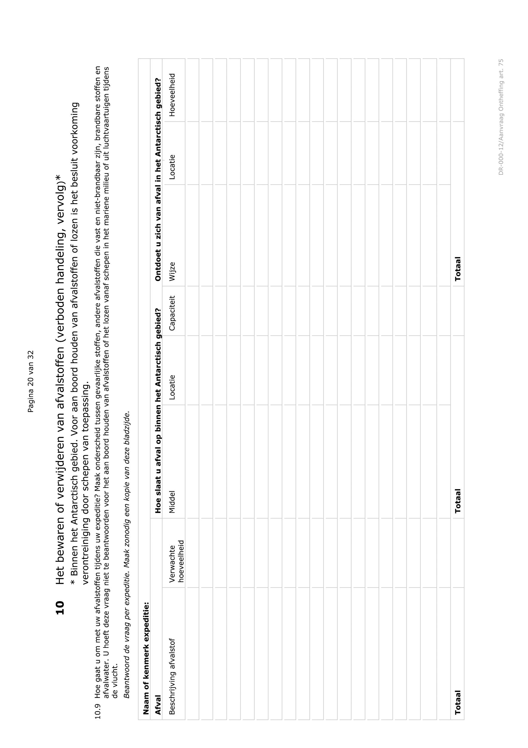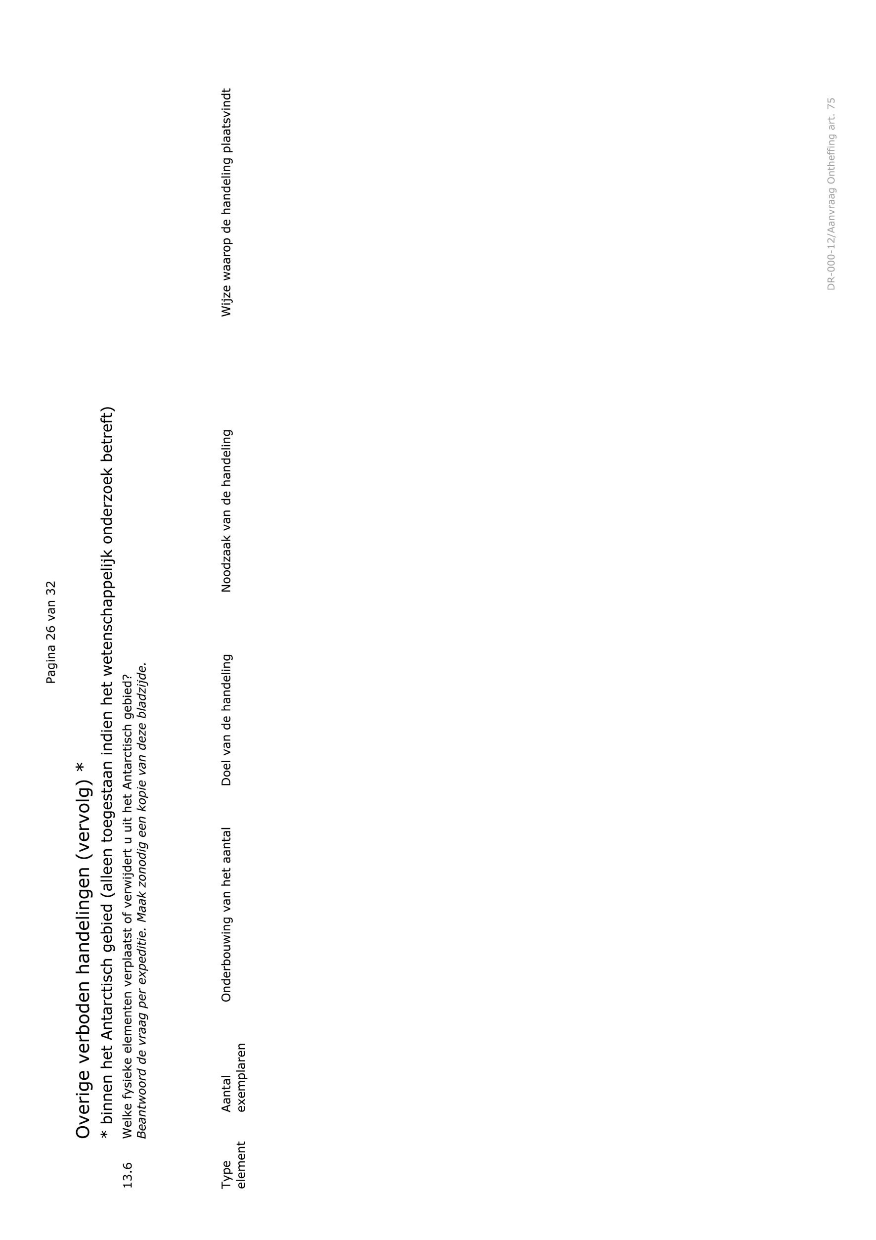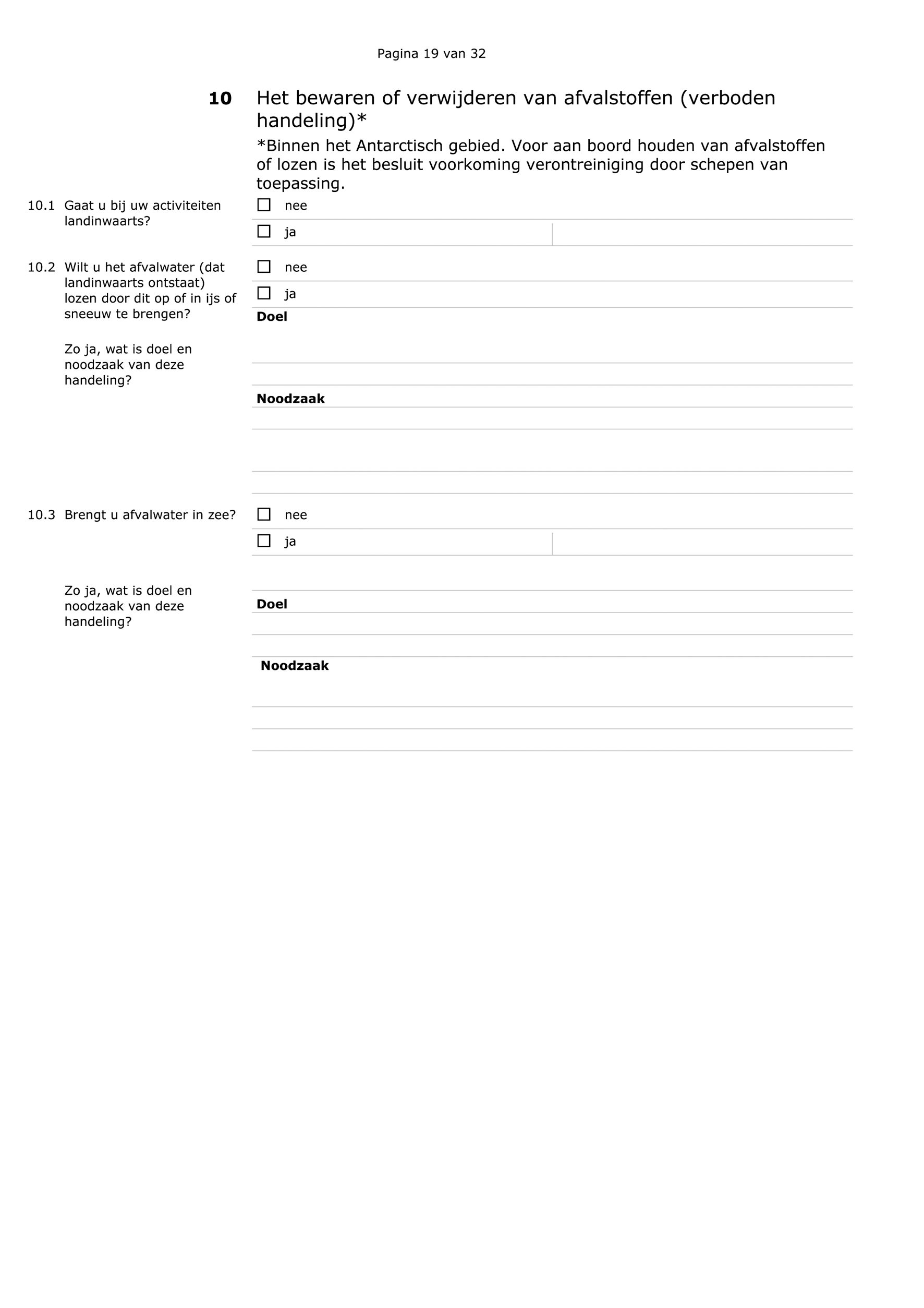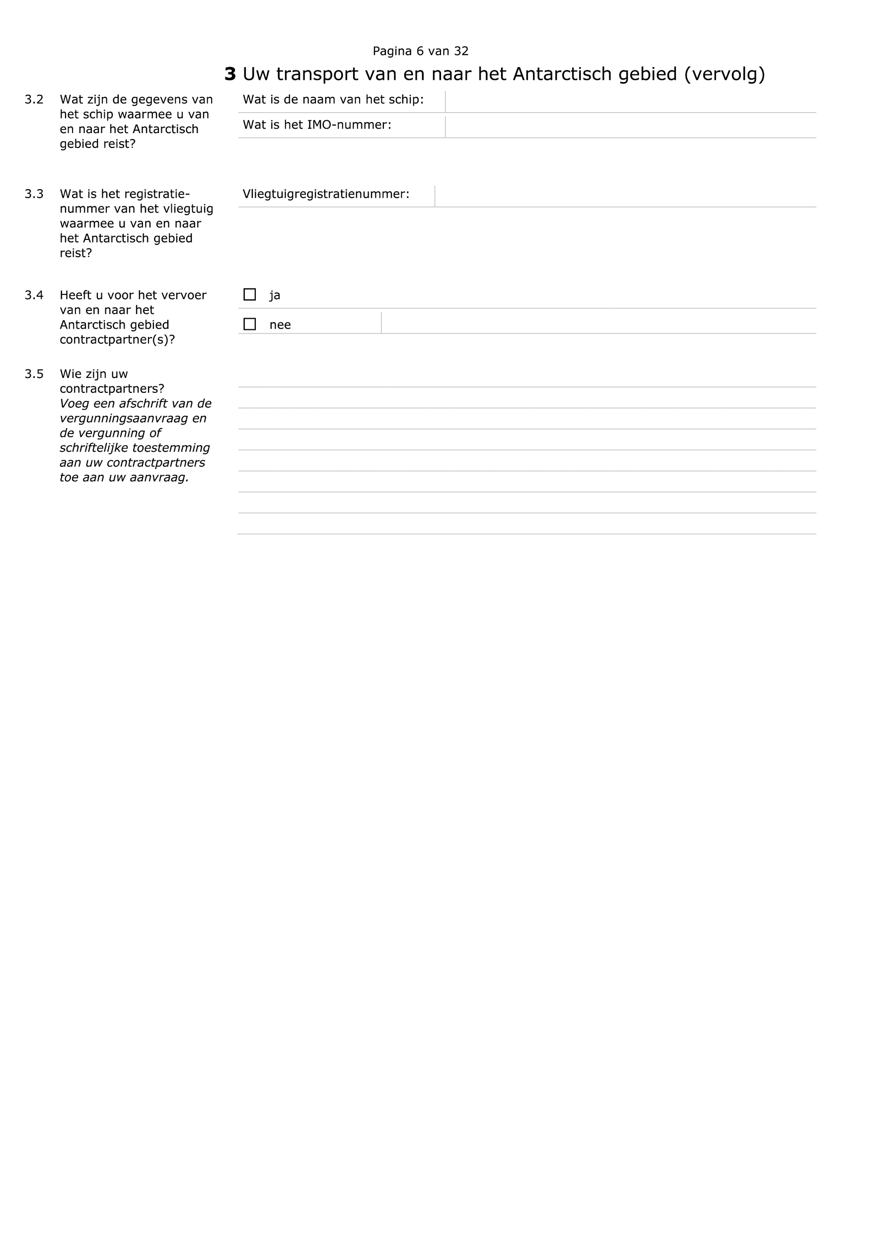 Als gevolg van die wijzigingen zal de aanvrager van een vergunning op het formulier over verschillende onderwerpen informatie moeten verstrekken. Het formulier is daarvoor aangepast. Los van de vereiste wijzigingen in verband met de internationale maatregelen is van de gelegenheid gebruik gemaakt om het formulier zodanig vorm te geven dat de verkregen informatie ook eenvoudiger gebruikt kan worden voor het aanleveren van verplichte internationale rapportages in het kader van het Verdrag inzake Antarctica.