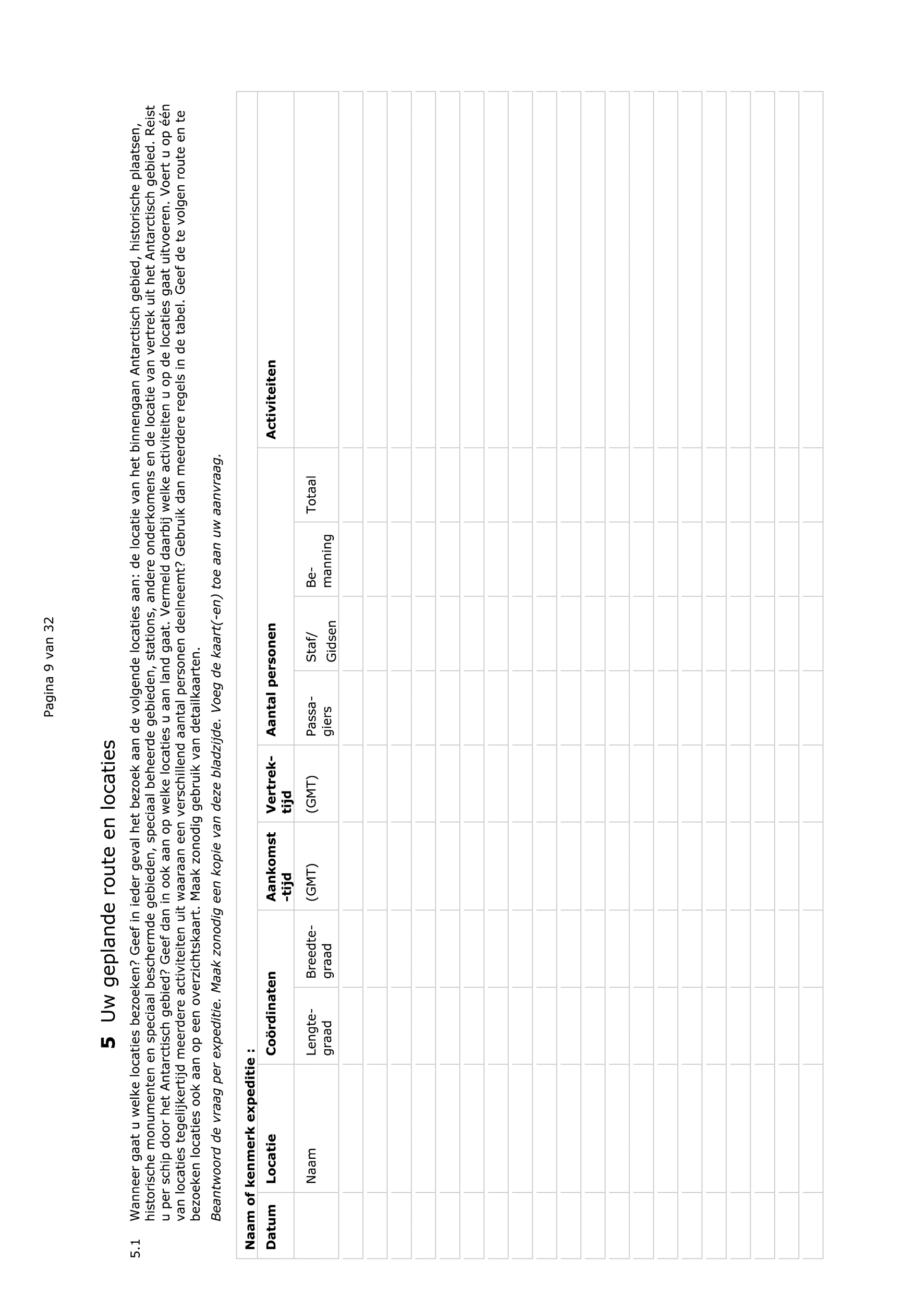 De bovengenoemde wijzigingen van de WbA en het BbA zullen gefaseerd in werking treden. Hiermee is rekening gehouden bij de vormgeving van het formulier. Als gevolg van deze gefaseerde inwerkingtreding zal bij een aantal onderdelen van het formulier al wel informatie kunnen worden aangeleverd over onderdelen van activiteiten of plannen zonder dat er al sprake is van het verplicht aanleveren van die informatie. Waar dit het geval is, wordt dat op het formulier aangegeven of blijkt dat uit de vraagstelling. Dit is bijvoorbeeld aan de orde bij het aan land gaan in het Antarctisch gebied, bij het opstellen van plannen en het beschikken over verzekeringen. Indien de informatie niet wordt aangeleverd zal dit uiteraard geen reden zijn om de vergunningaanvraag af te wijzen. Waar er al wel informatie kan worden verstrekt zal dit vaak als een nuttige aanvulling gelden betreffende de wijze waarop de activiteit is georganiseerd en welke voorzieningen zijn getroffen. Tevens kunnen organisatoren anticiperen op de komende wijzigingen.
