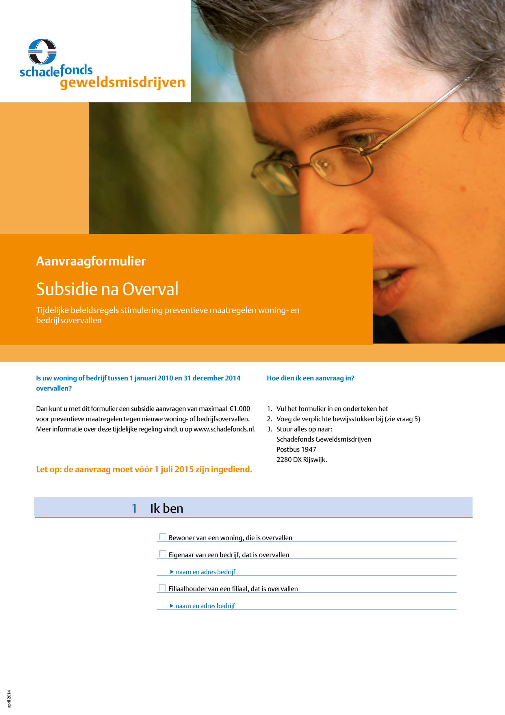 In artikel 3, eerste lid onder b, is bepaald dat de subsidie kan worden verstrekt indien de aanvrager door middel van facturen of betalingsbewijzen aantoont preventieve maatregelen te hebben genomen. Dit betekent dat er voor het Schadefonds Geweldsmisdrijven (SGM) ruimte bestaat om, indien het voor de aanvrager onmogelijk is de facturen zelf voor te schieten (omdat het inkomen van de aanvrager op of onder het bijstandsniveau is), de factuur direct aan de leverancier te voldoen. De voorwaarden waaraan moet zijn voldaan om voor een dergelijke voorschotregeling in aanmerking te komen, zijn te vinden op de website van het SGM.
