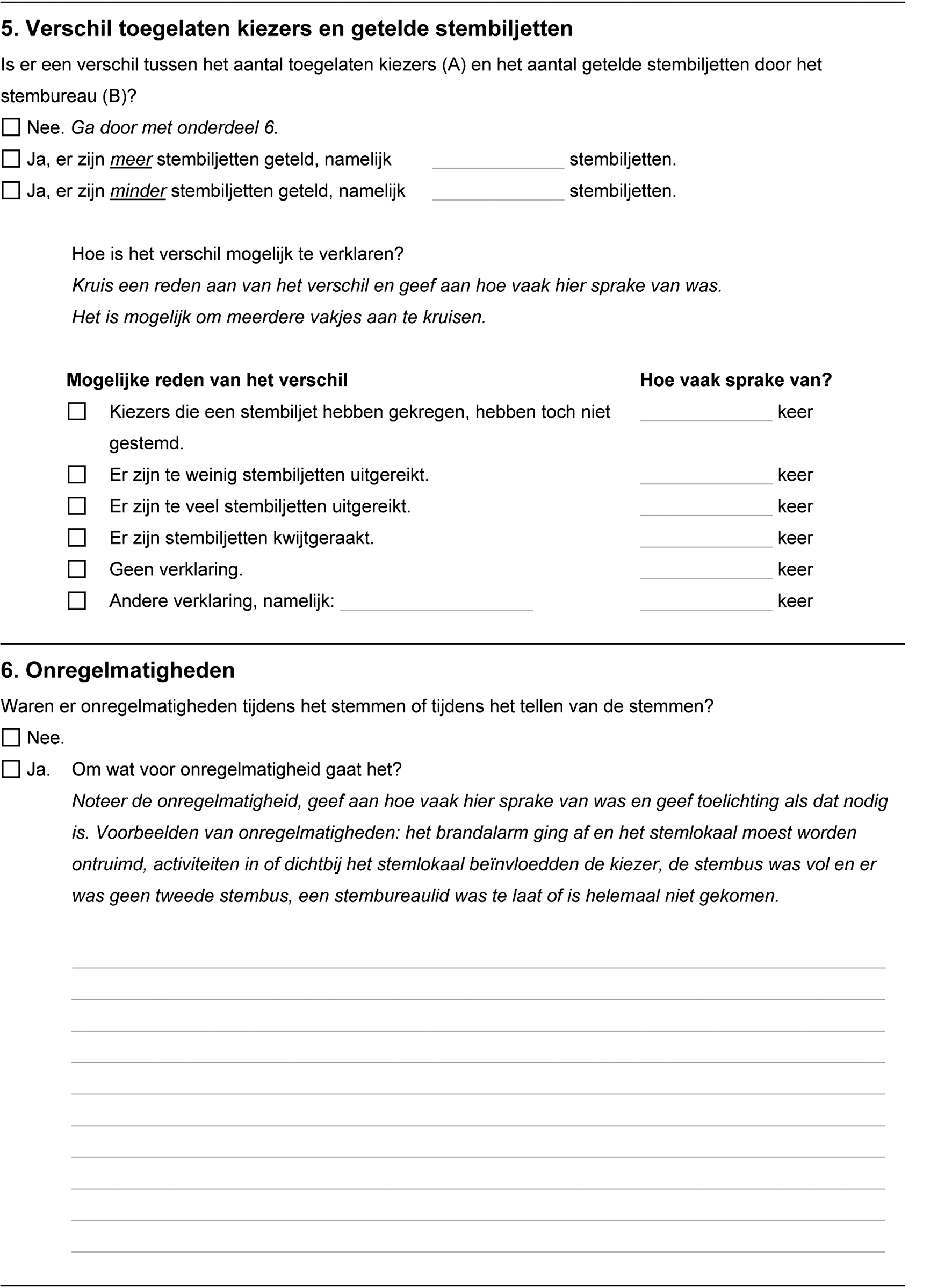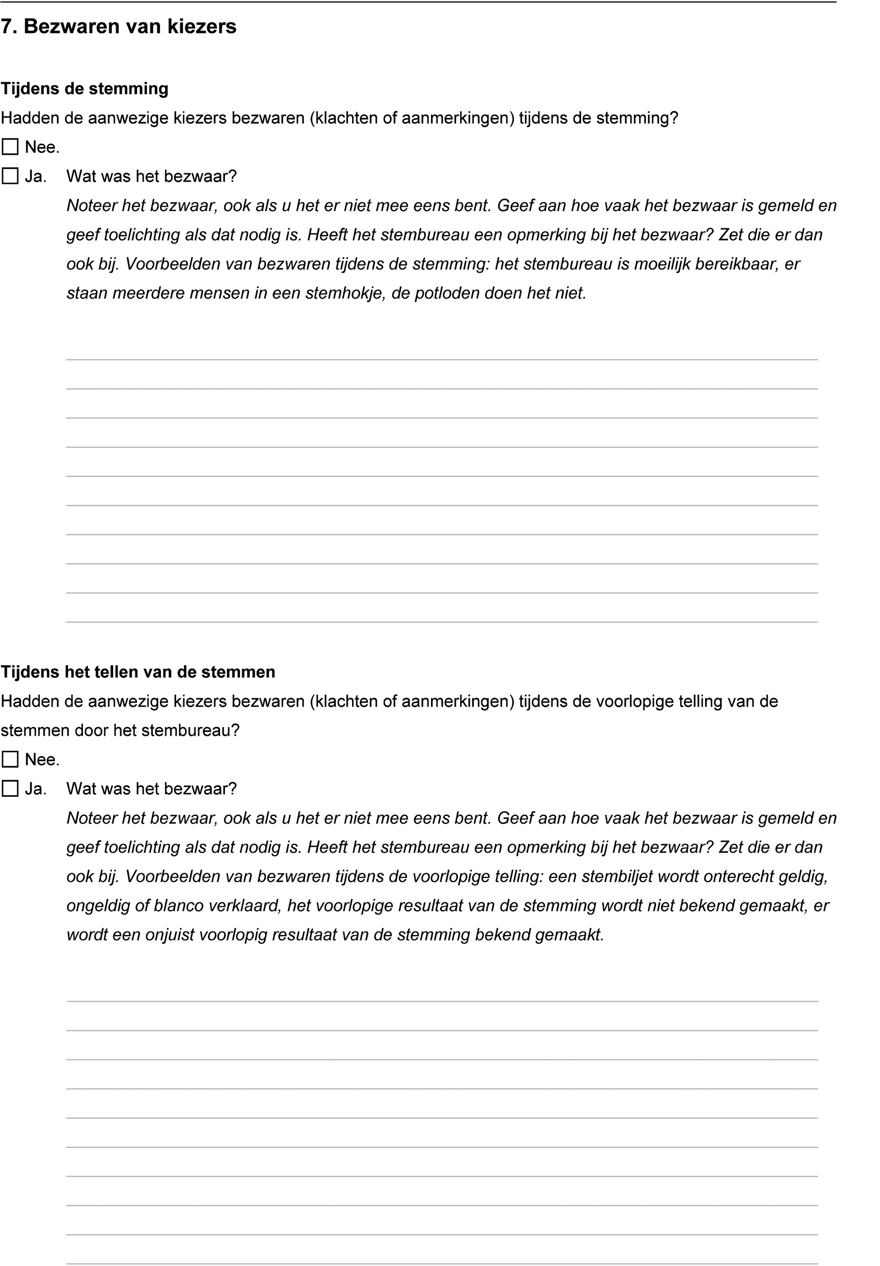 Verder maakt het gemeentelijk stembureau een verslag van de bezwaren die zijn gemaakt