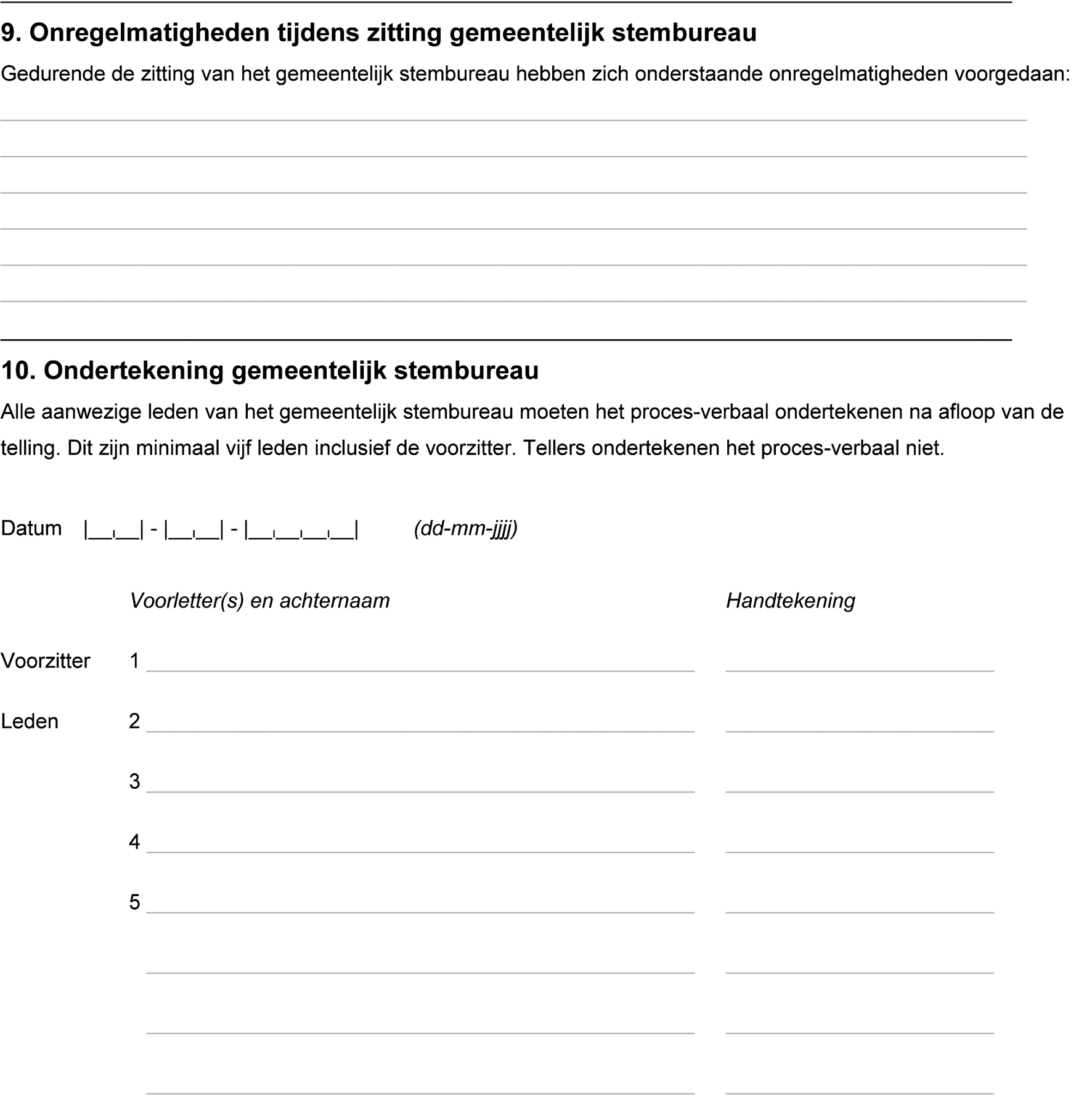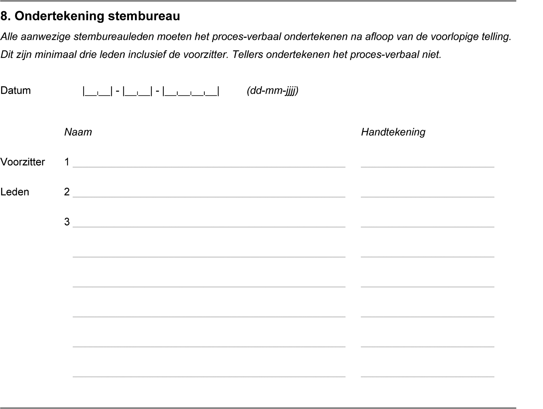 vast.4 De leden van het gemeentelijk stembureau voegen zich daarvoor bij elkaar en ondertekenen