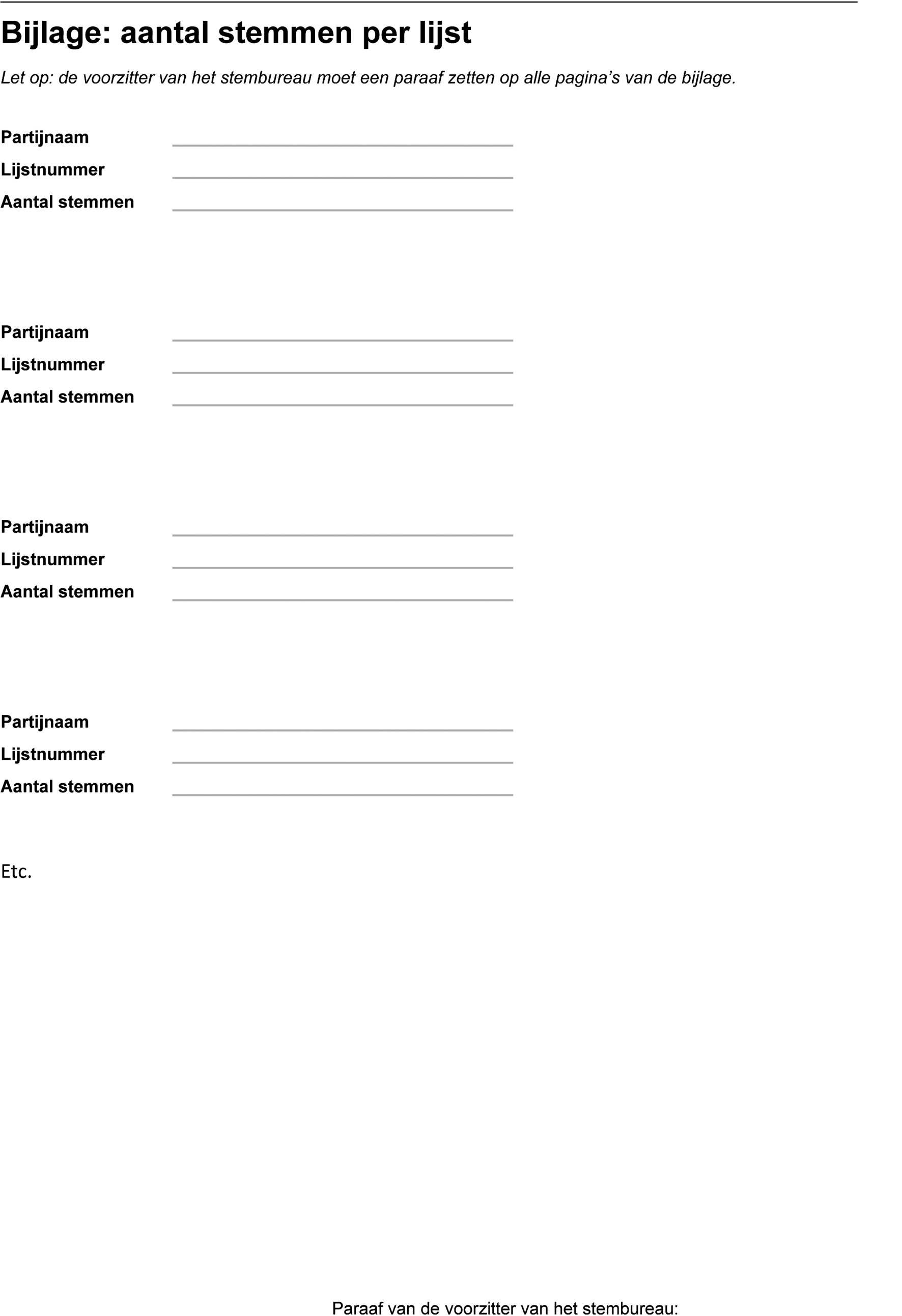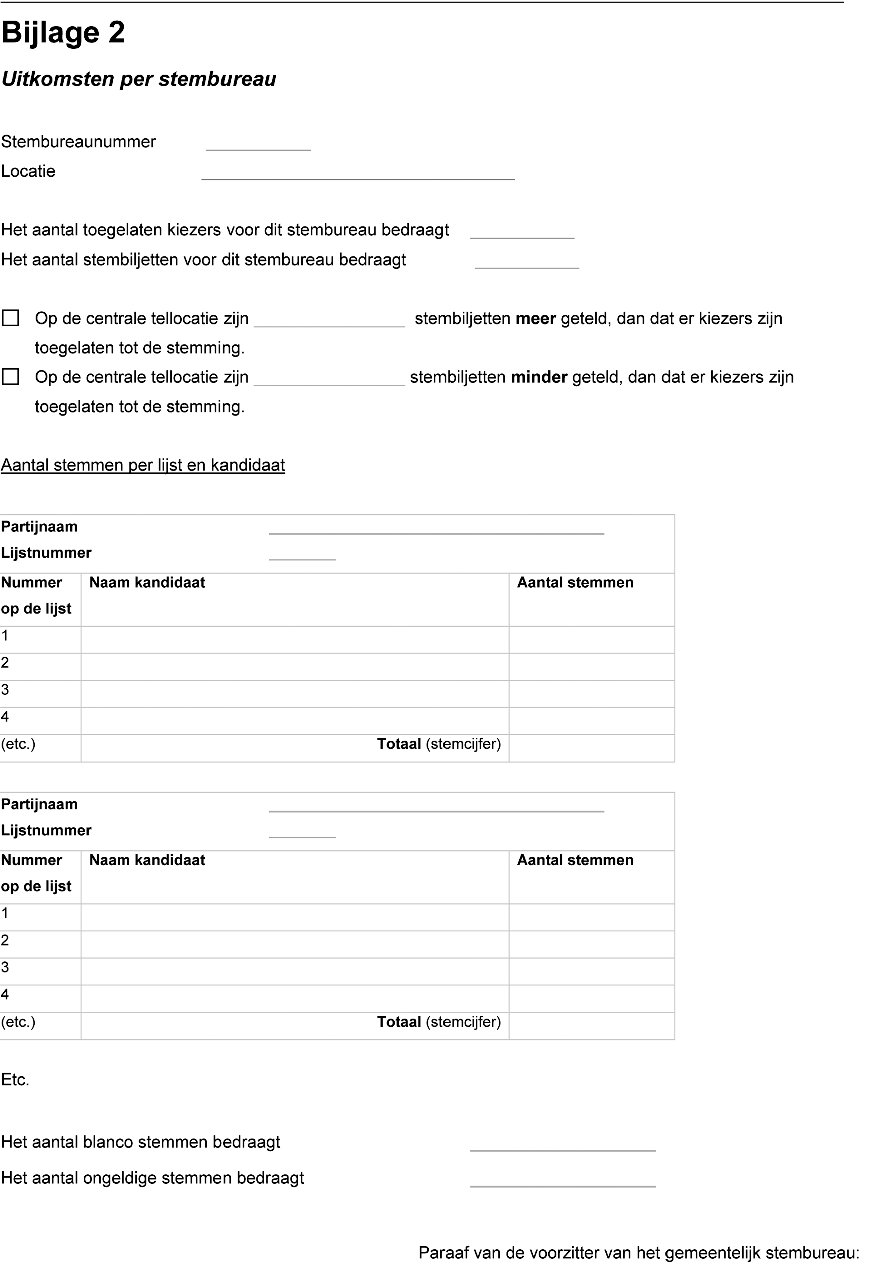 In de bijlage van deze regeling wordt voor het stembureau een nieuw proces-verbaal