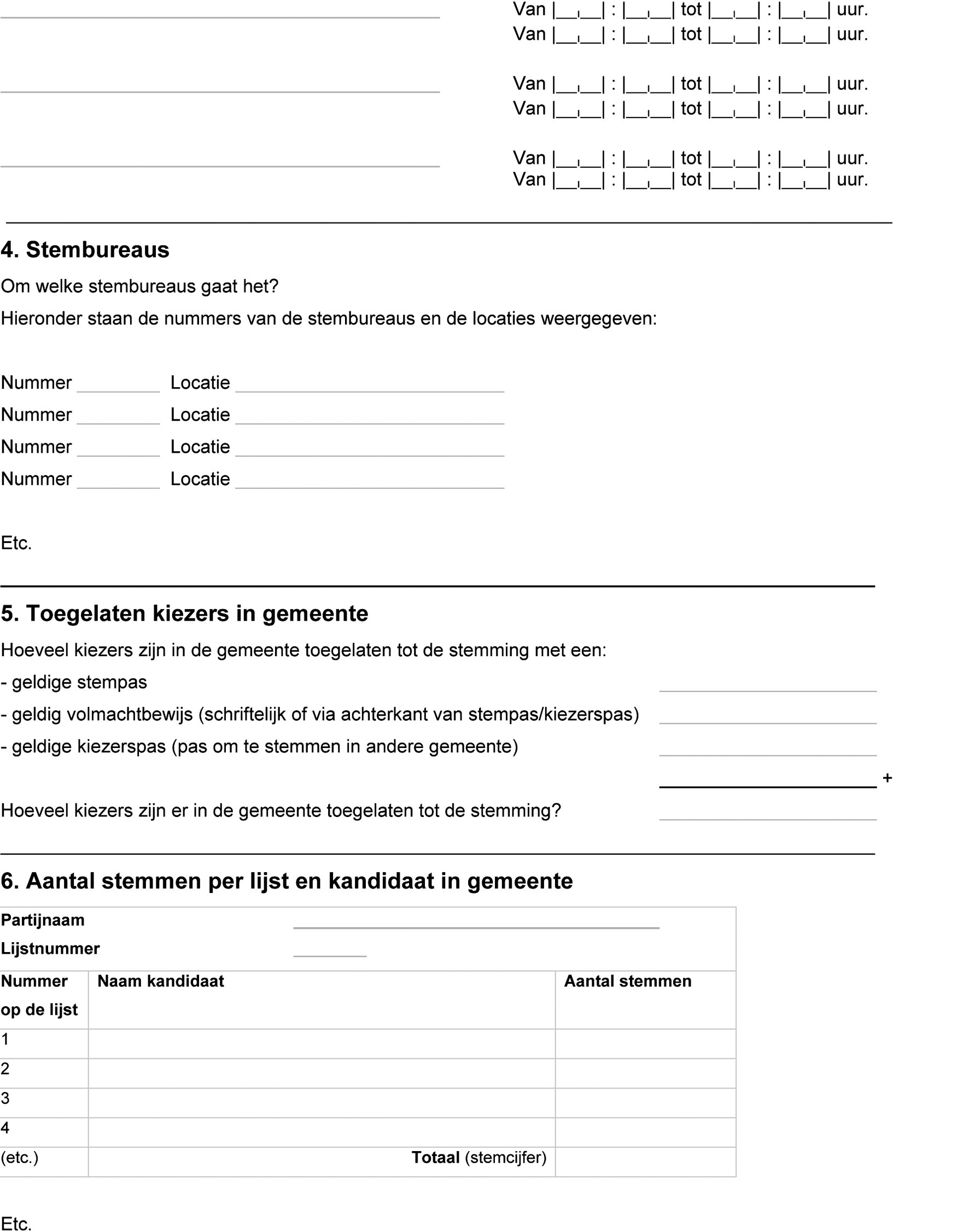 4. De processen-verbaal van het stembureau en gemeentelijk stembureau