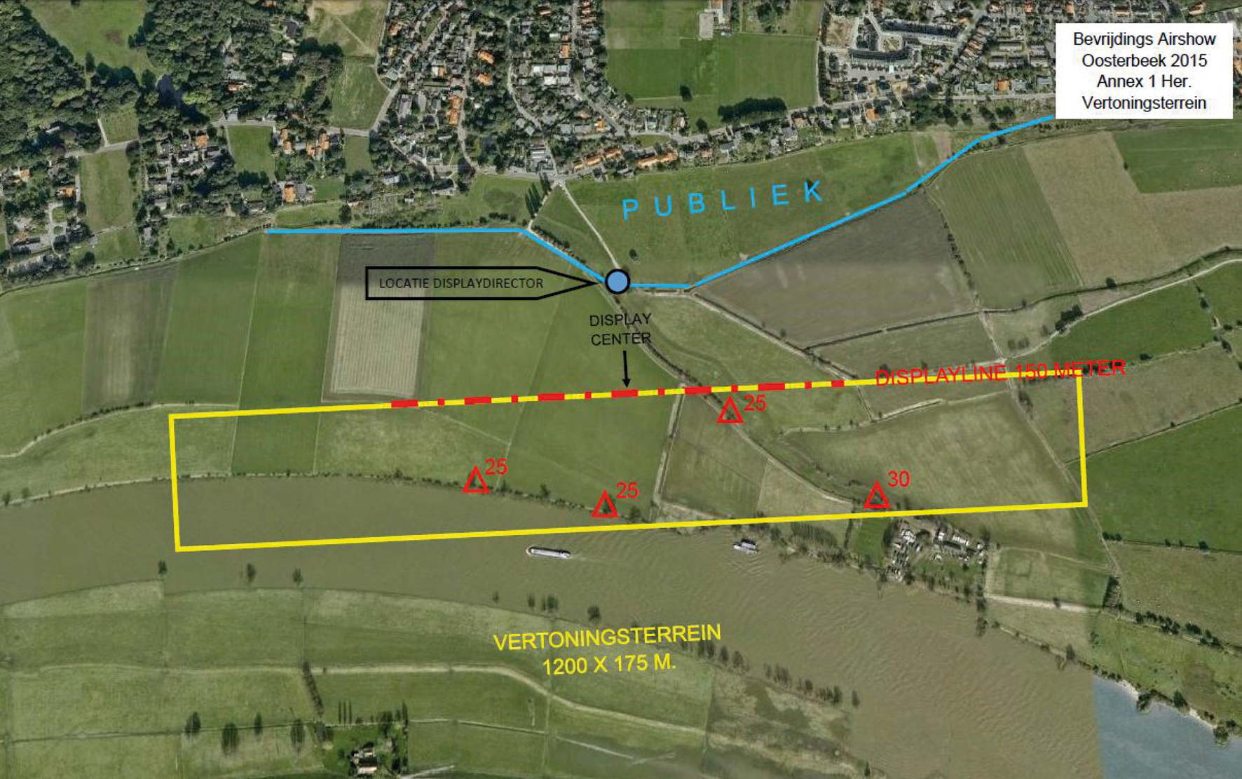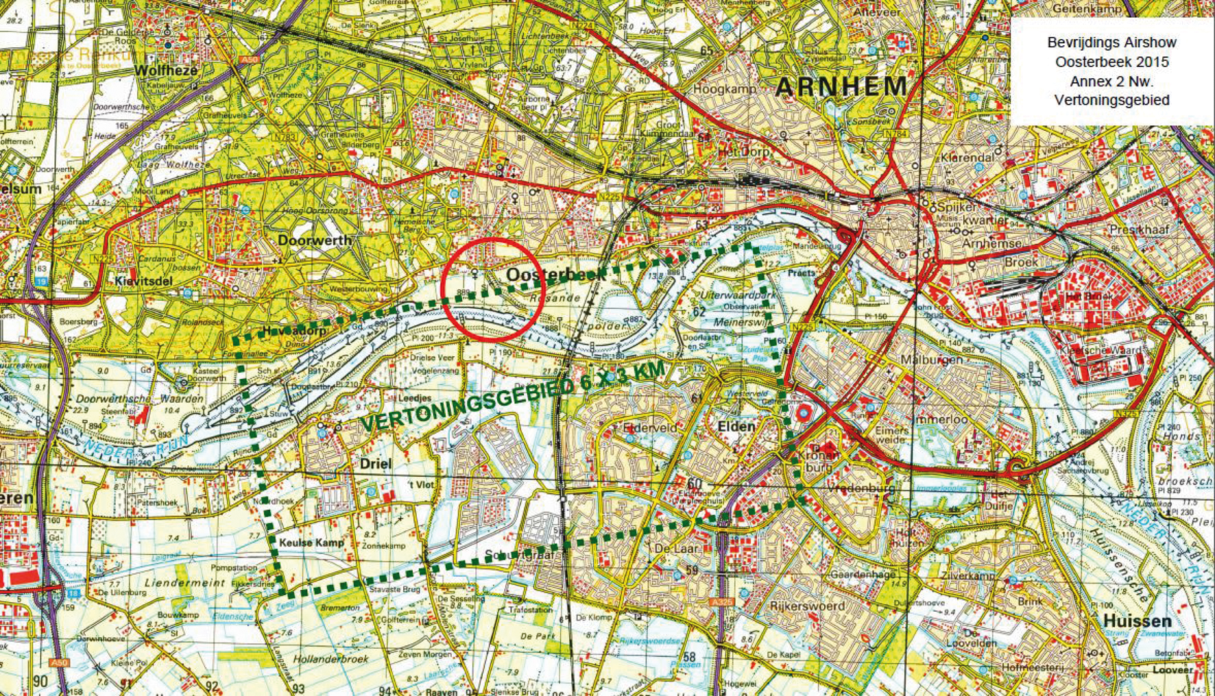 De luchtvaartvertoning mag uitsluitend plaatsvinden binnen het hiervoor aangewezen tijdelijk gebied met beperkingen Oosterbeek.