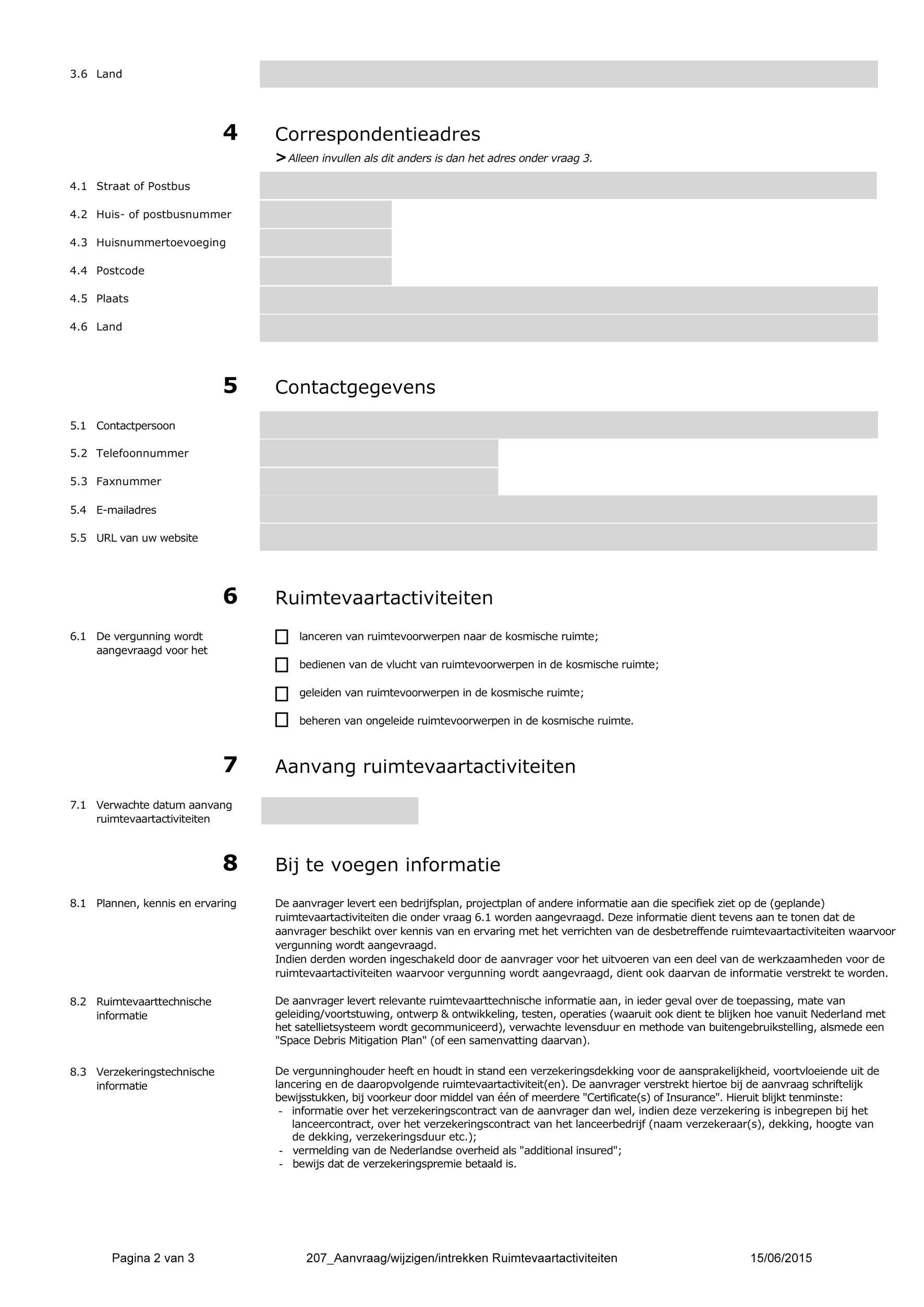 Het bestaande aanvraagformulier voor een ruimtevaartvergunning is zodanig aangepast dat het nu zowel voor geleide als voor ongeleide satellieten kan worden gebruikt.