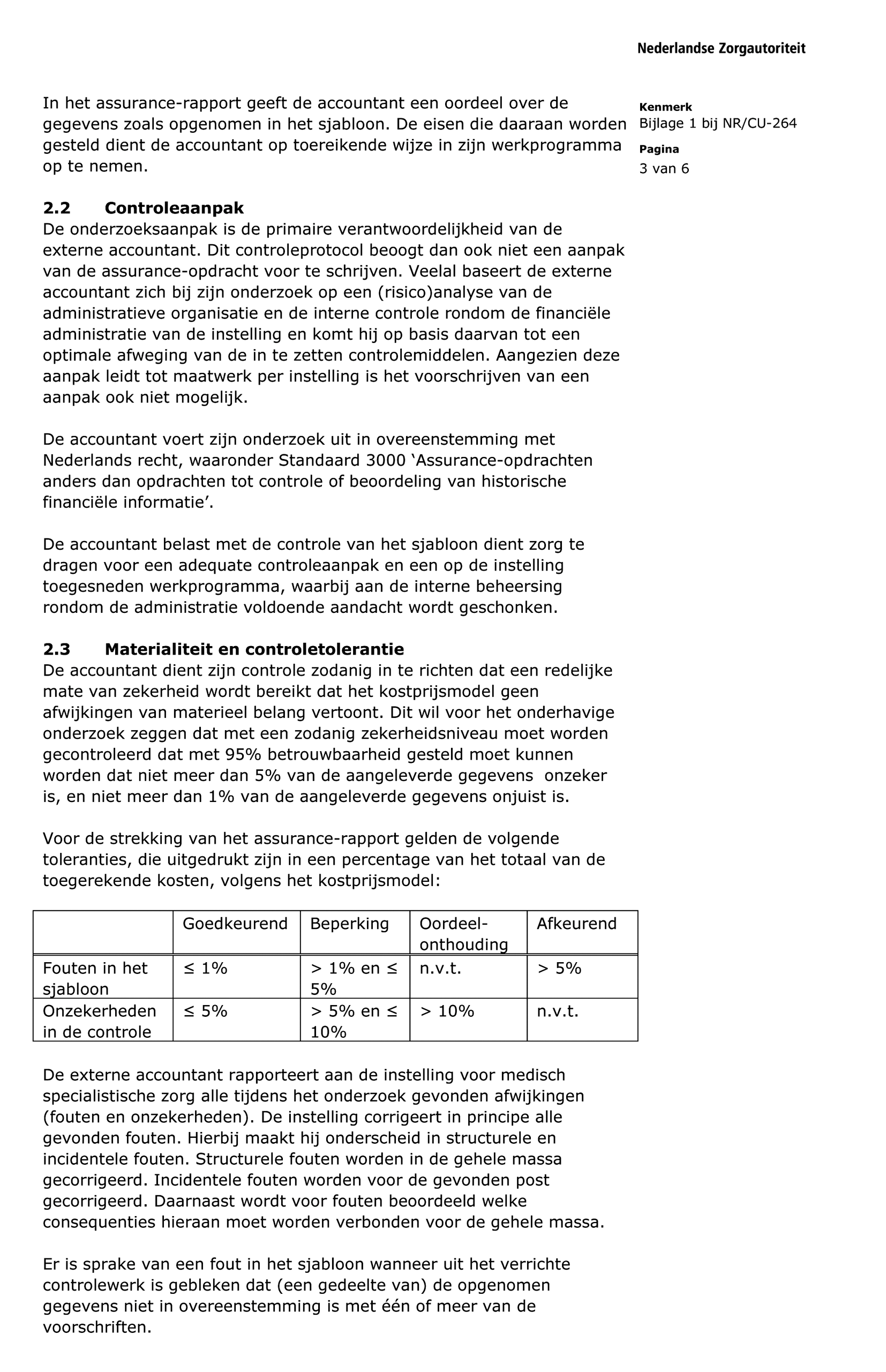 3.3 Bij het uitvoeren van kostprijsberekeningen hanteert de instelling een bestendige en gedocumenteerde gedragslijn.