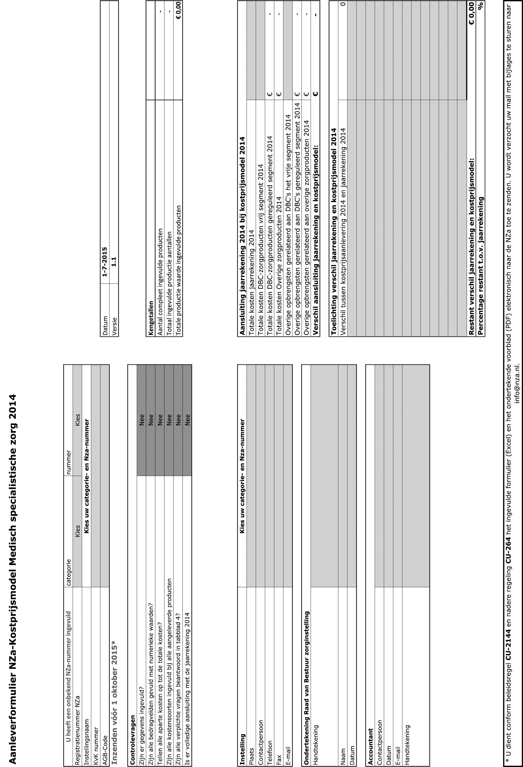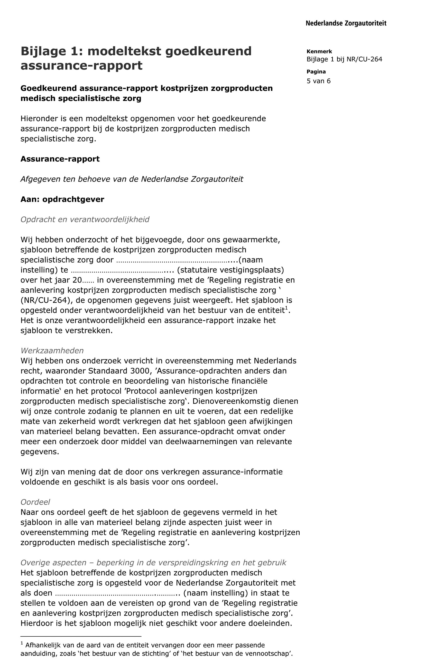 6.5 De instelling maakt voor deze aanlevering gebruik van een aanleversjabloon zoals gepubliceerd op de website van de NZa. De instelling levert aan conform de in het sjabloon opgenomen vereisten.
