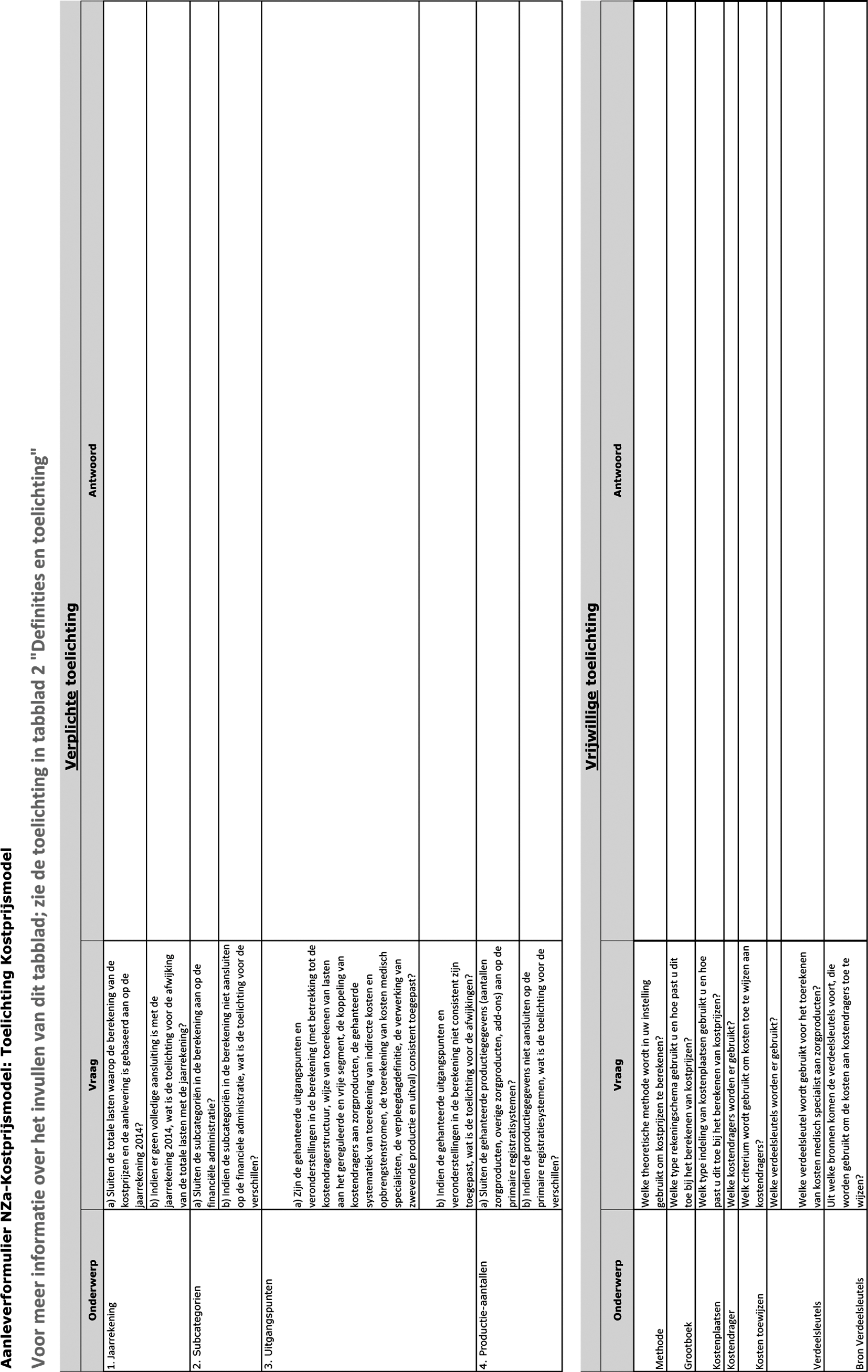– De gemaakte keuzes in de kostprijsberekening (waaronder de ratoberekening van indirecte kosten naar directe kosten per zorgproduct).