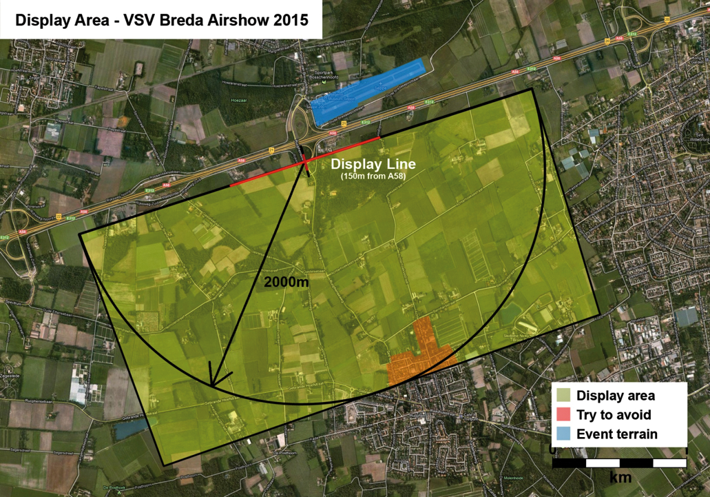 De luchtvaartvertoning mag uitsluitend plaatsvinden binnen het voor de luchtvaartvertoning aangewezen tijdelijke gebied met beperkingen Breda.