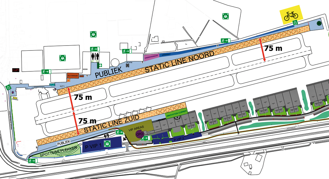 7. Het publieksgebied beperkt zich tot de luchthaven Seppe, zoals opgenomen in bijlage 2, behorende bij deze vergunning, met dien verstande dat de minimale afstand tussen de hartlijn van de baan en de publiekslijn minimaal 75 meter bedraagt.