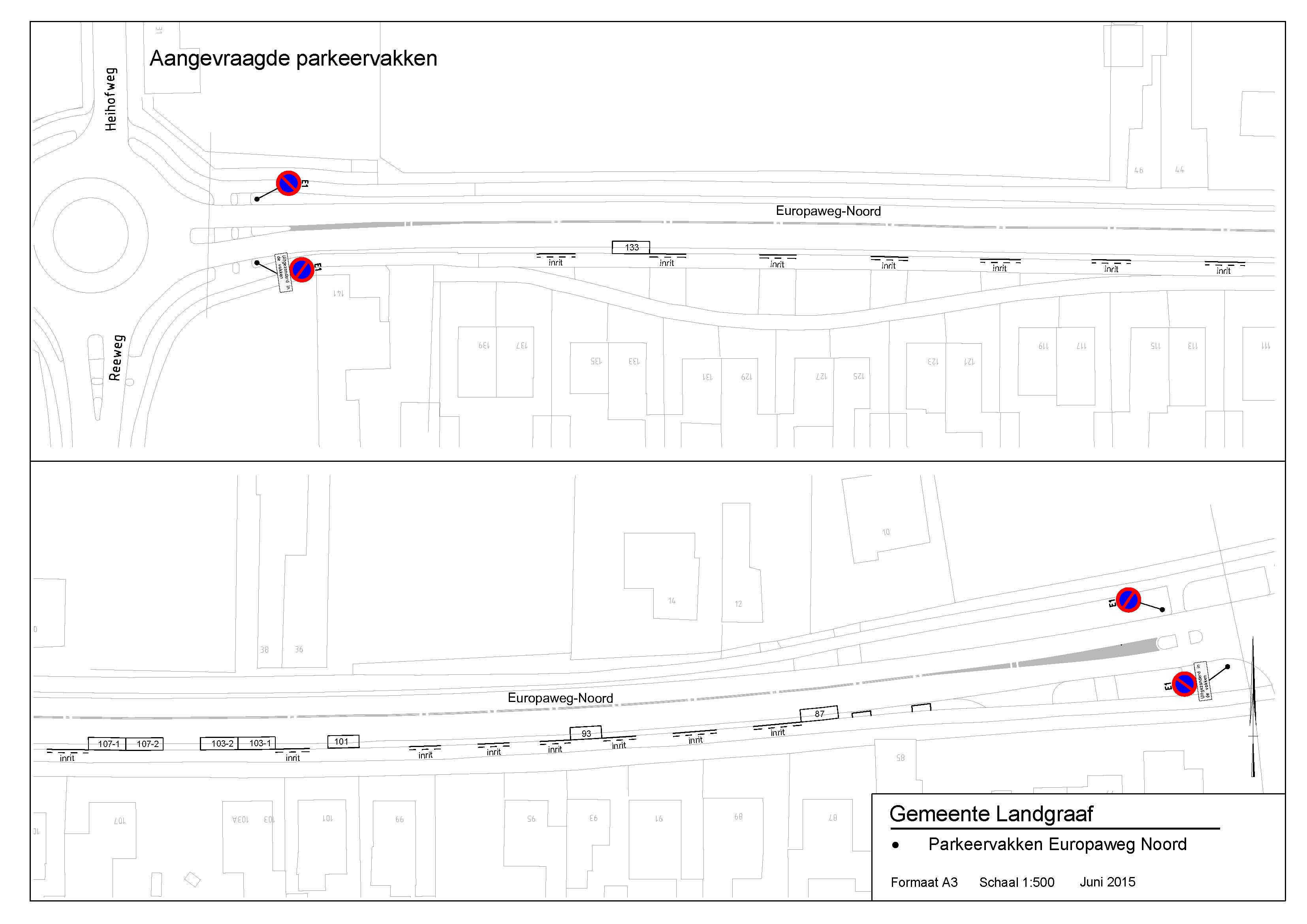 een en ander overeenkomstig is met de bij dit verkeersbesluit behorende situatietekening ‘’Parkeervakken Europaweg Noord’’ d.d. juni 2015;