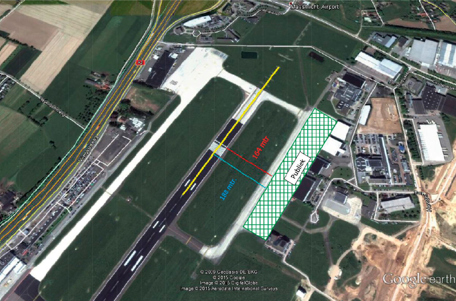 12. De publieksgebieden beperken zich tot een gebied ten noorden van de start- en landingsbaan, zoals opgenomen in bijlage 2, behorende bij deze vergunning; in het vertoningsterrein mogen zich geen personen bevinden.