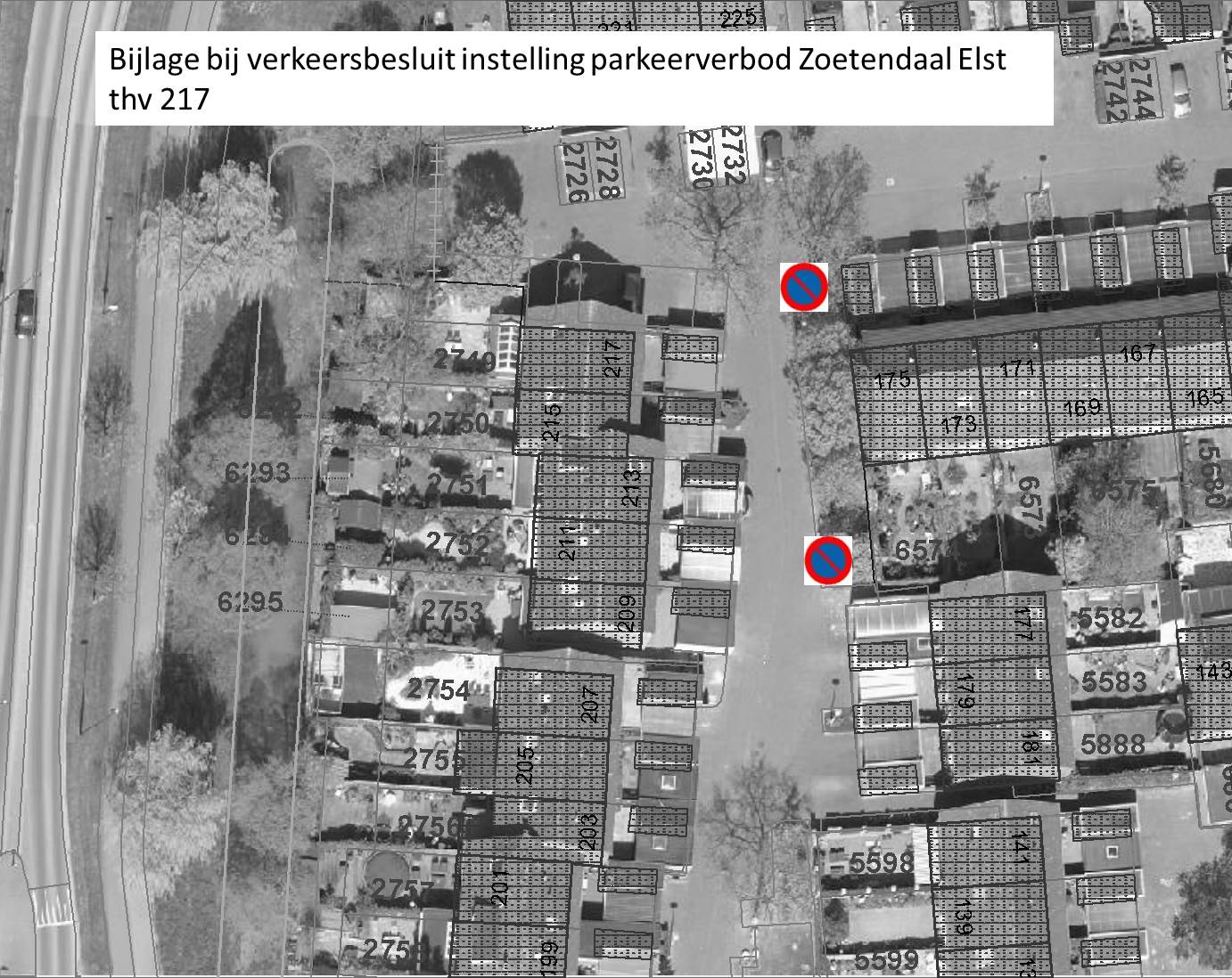 Verkeersbesluit tot het instellen van een parkeerverbod op de Zoetendaal te Elst ter hoogte van huisnummers 211 t/m 217
