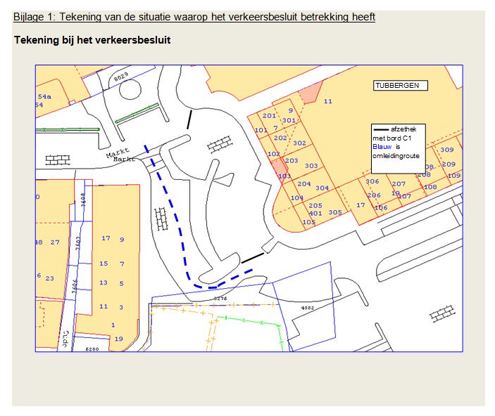In de bijlage is de situatie te zien waarop het verkeersbesluit betrekking heeft.