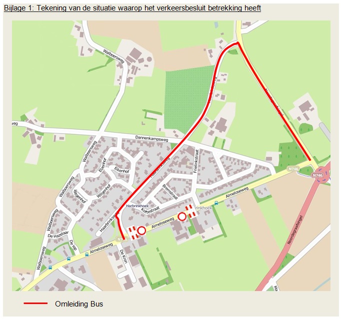Omleidingsroute voor het verkeer komende vanaf Mariaparochie via Populier – Haarbrinksweg naar Almeloseweg.