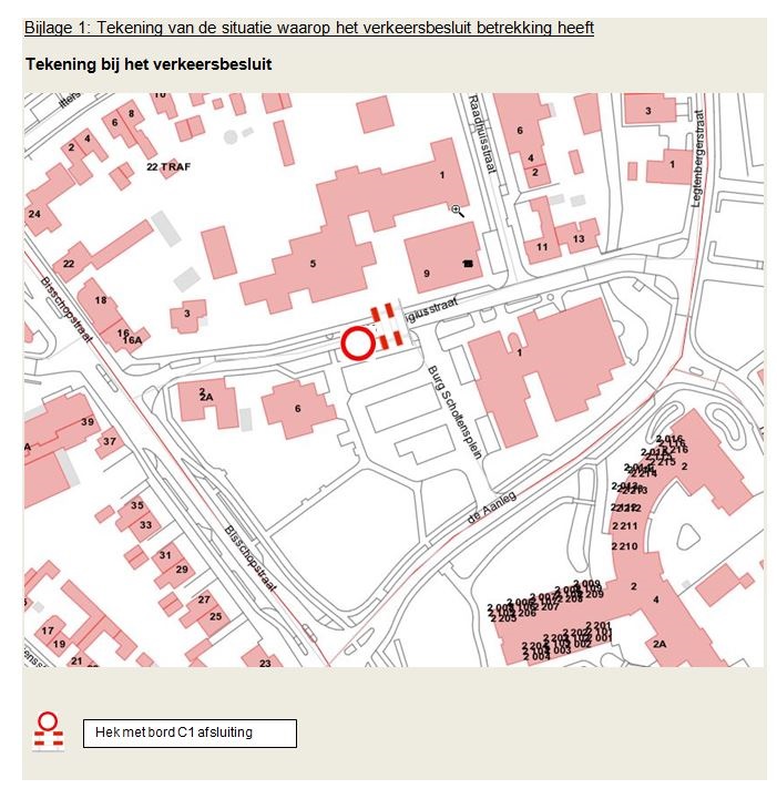 In de bijlage is de situatie te zien waarop het verkeersbesluit betrekking heeft.