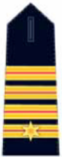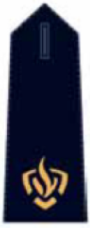 Op de schouderbedekkingen, van dezelfde stof van colbert vier galons, de eerste galon aangebracht op een afstand van 2 cm vanuit de schoudernaad, de overige galons met een onderlinge afstand van 4 mm met in de hartlijn in het midden van de eerste galon een zespuntige ster van goudkleurig draad met een middellijn van 21 mm en zodanig geplaatst dat een punt van de ster evenwijdig aan de lengterichting van de schouderbedekking is gericht.
