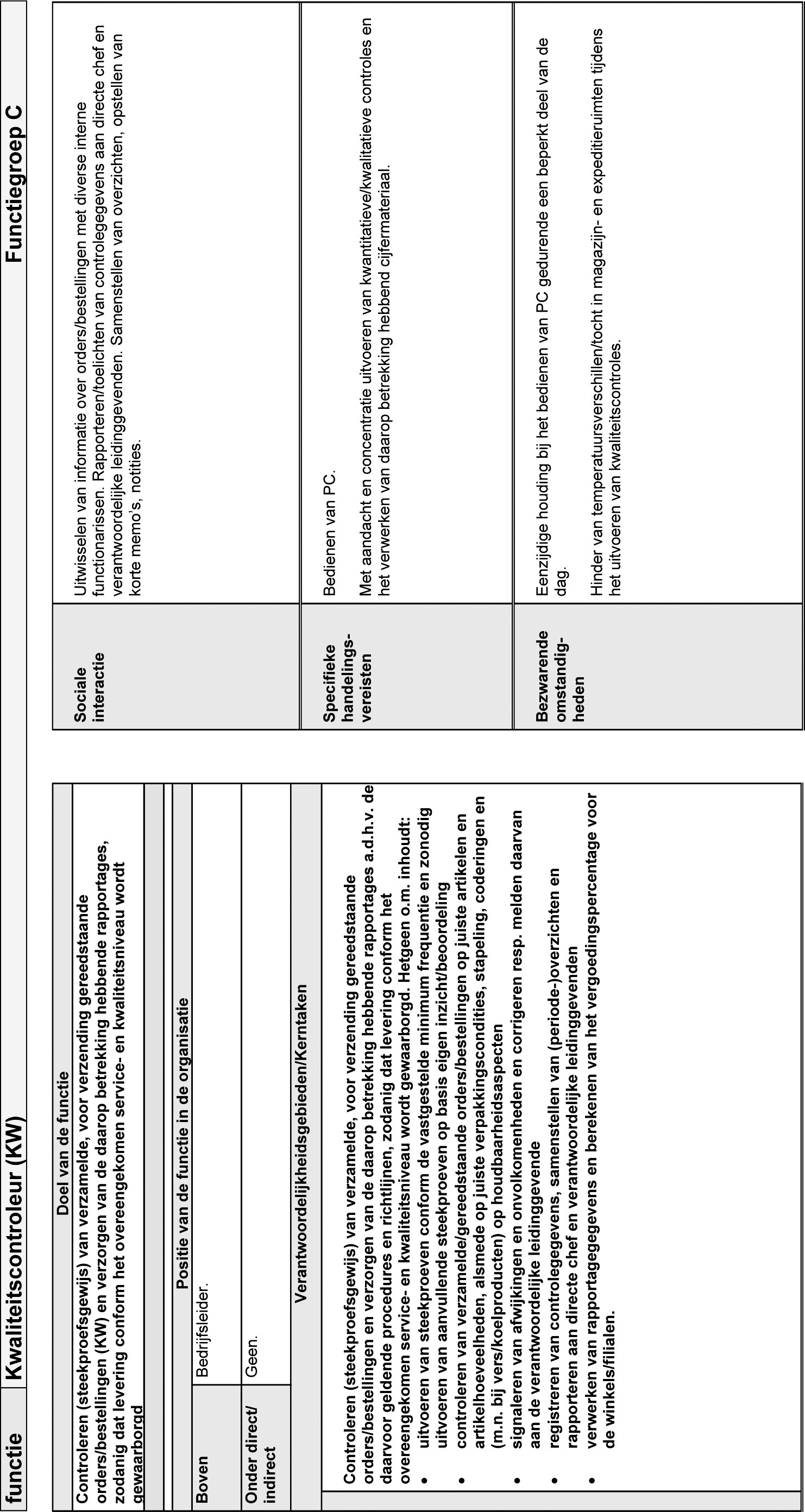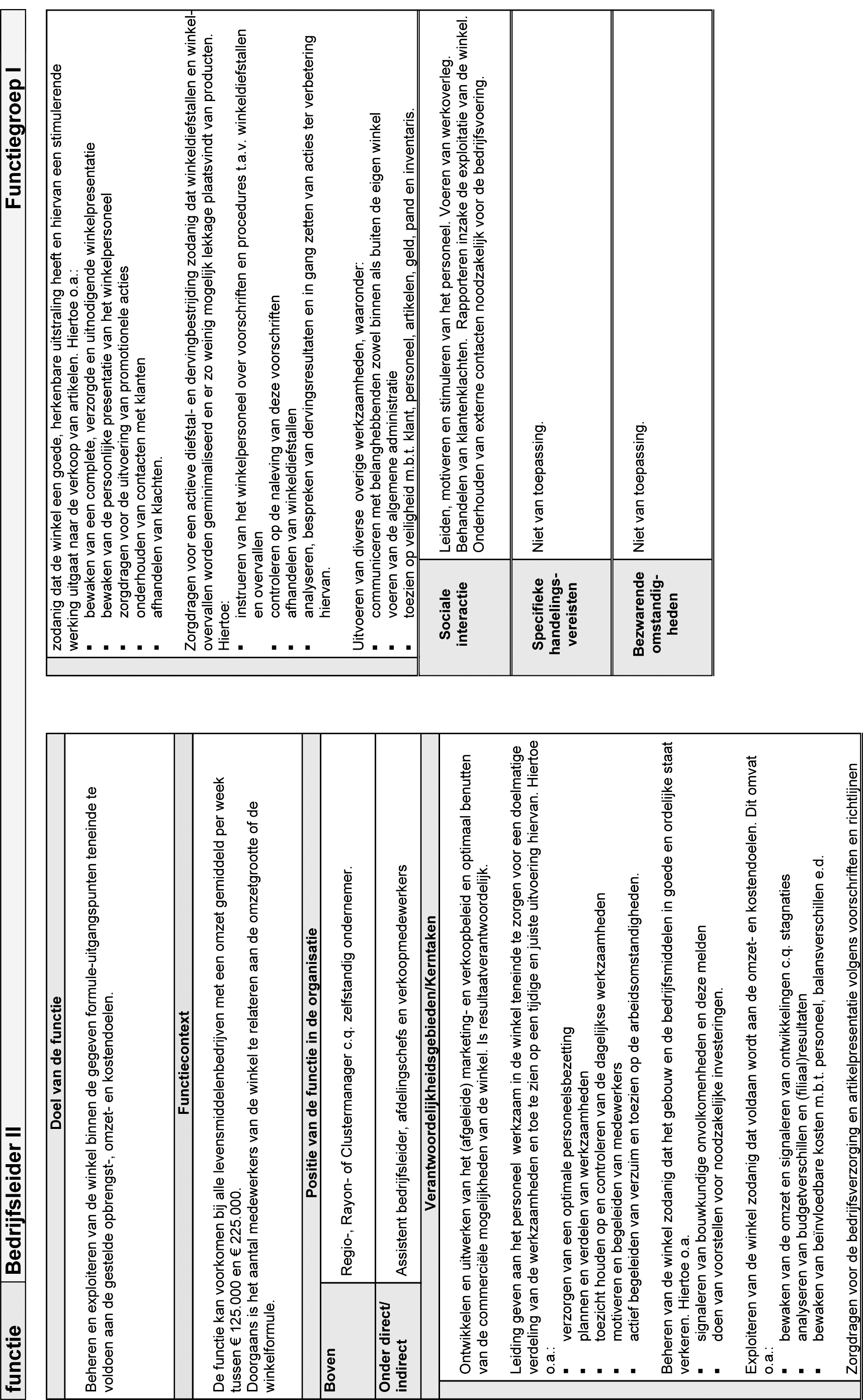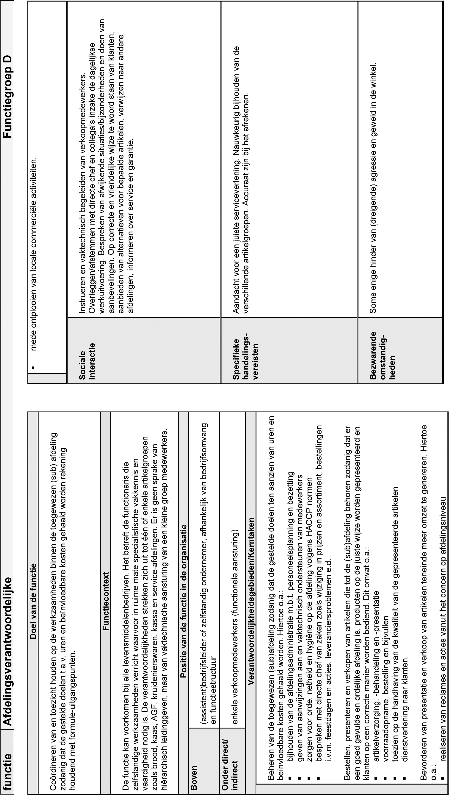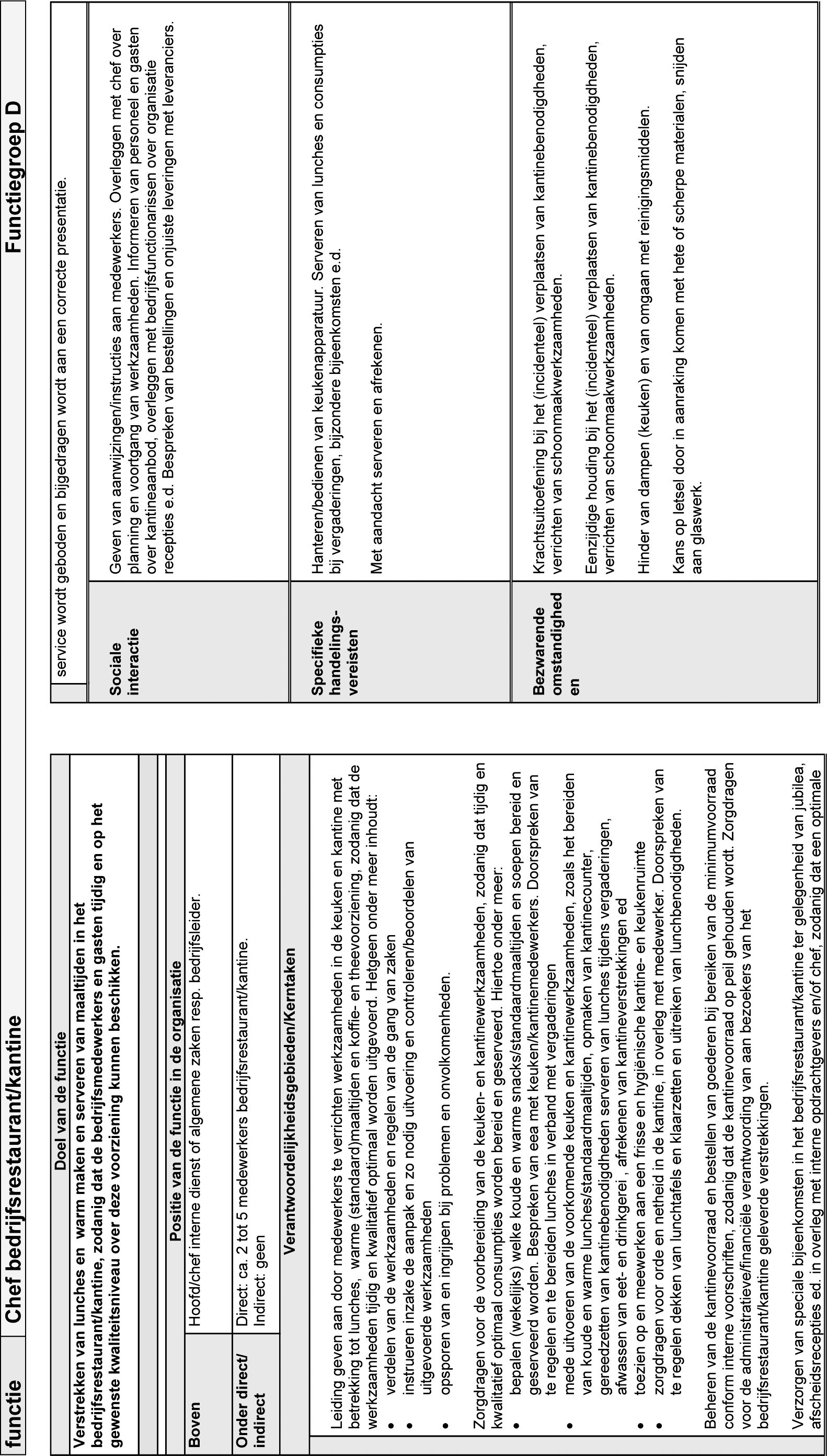 Op de functiedocumenten staat onder het kopje ‘positie van de functie in de organisatie’ bij onder direct/indirect of er in de functie sprake is van leidinggeven. Bij de functies Afdelingschef en (Assistent) Bedrijfsleider betreft dit direct/hiërarchisch leidinggeven, waarbij de desbetreffende functionaris verantwoordelijk is voor alle door de onder hem/haar gestelde medewerkers uit te voeren werkzaamheden, in kwalitatieve en kwantitatieve zin. Hij/zij beoordeelt de medewerkers in hun werk, neemt waarnodig corrigerende maatregelen en is (mede) betrokken bij aanname en ontslag.