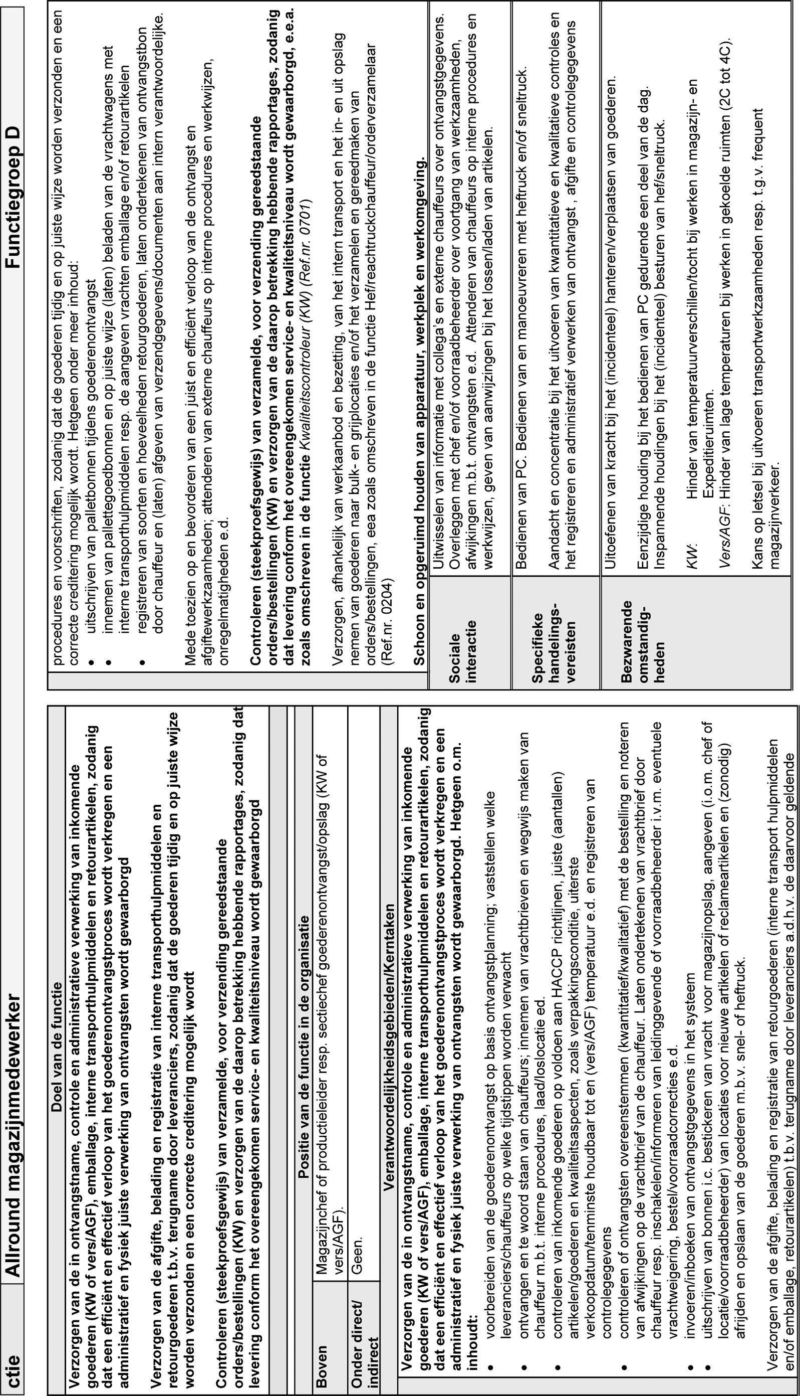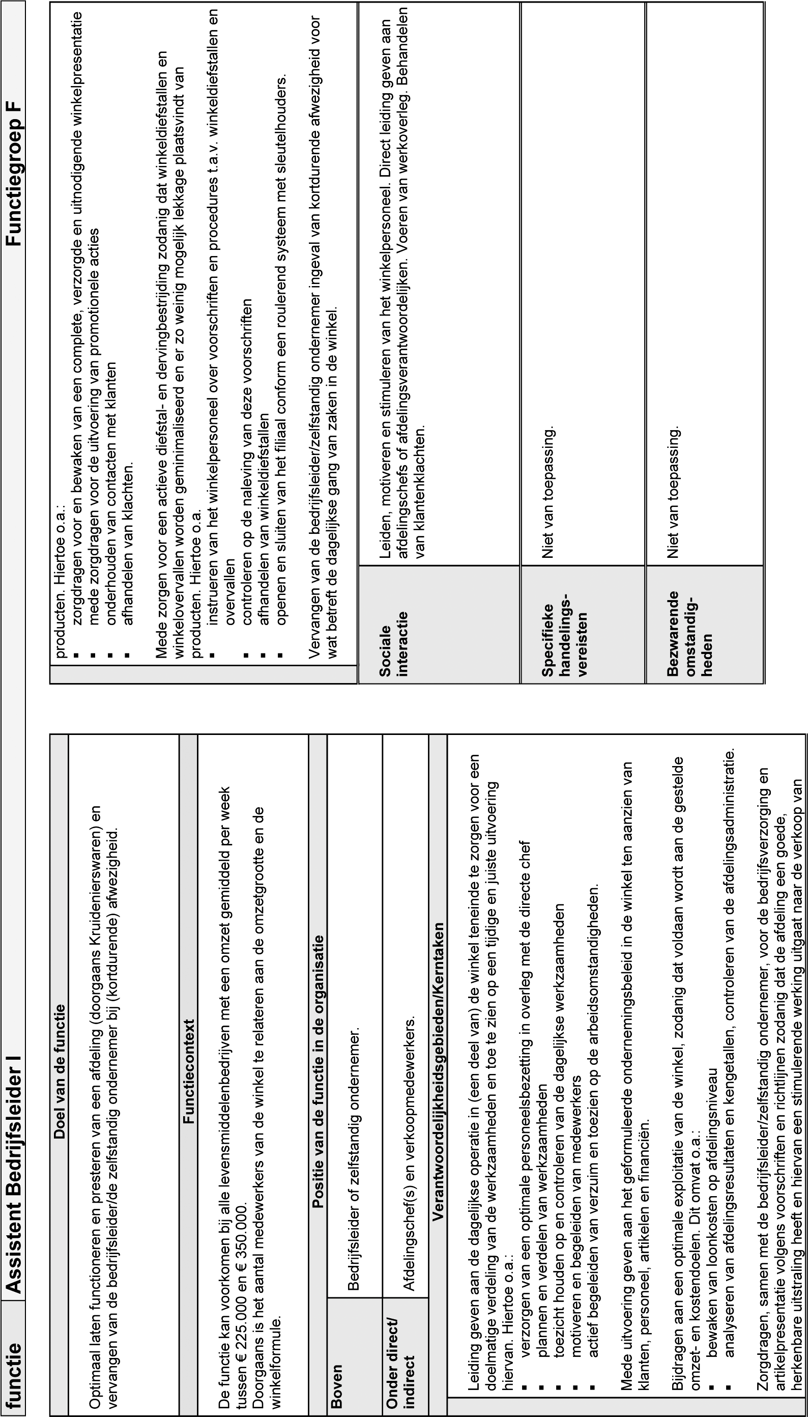 Bij het zoeken naar referentiefuncties kan niet uitsluitend op de naam van de functie worden afgegaan. De gehele functie-inhoud is voor de vergelijking van belang! |