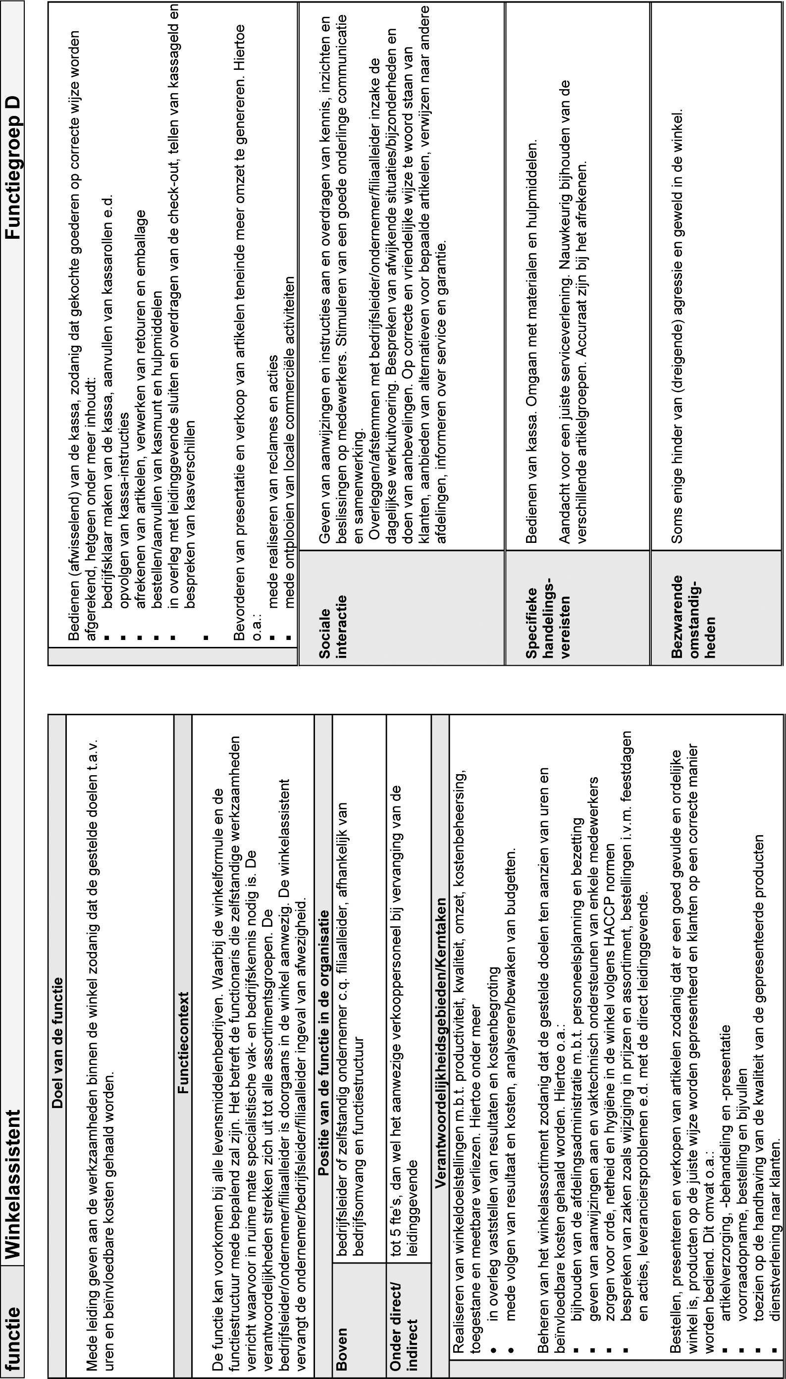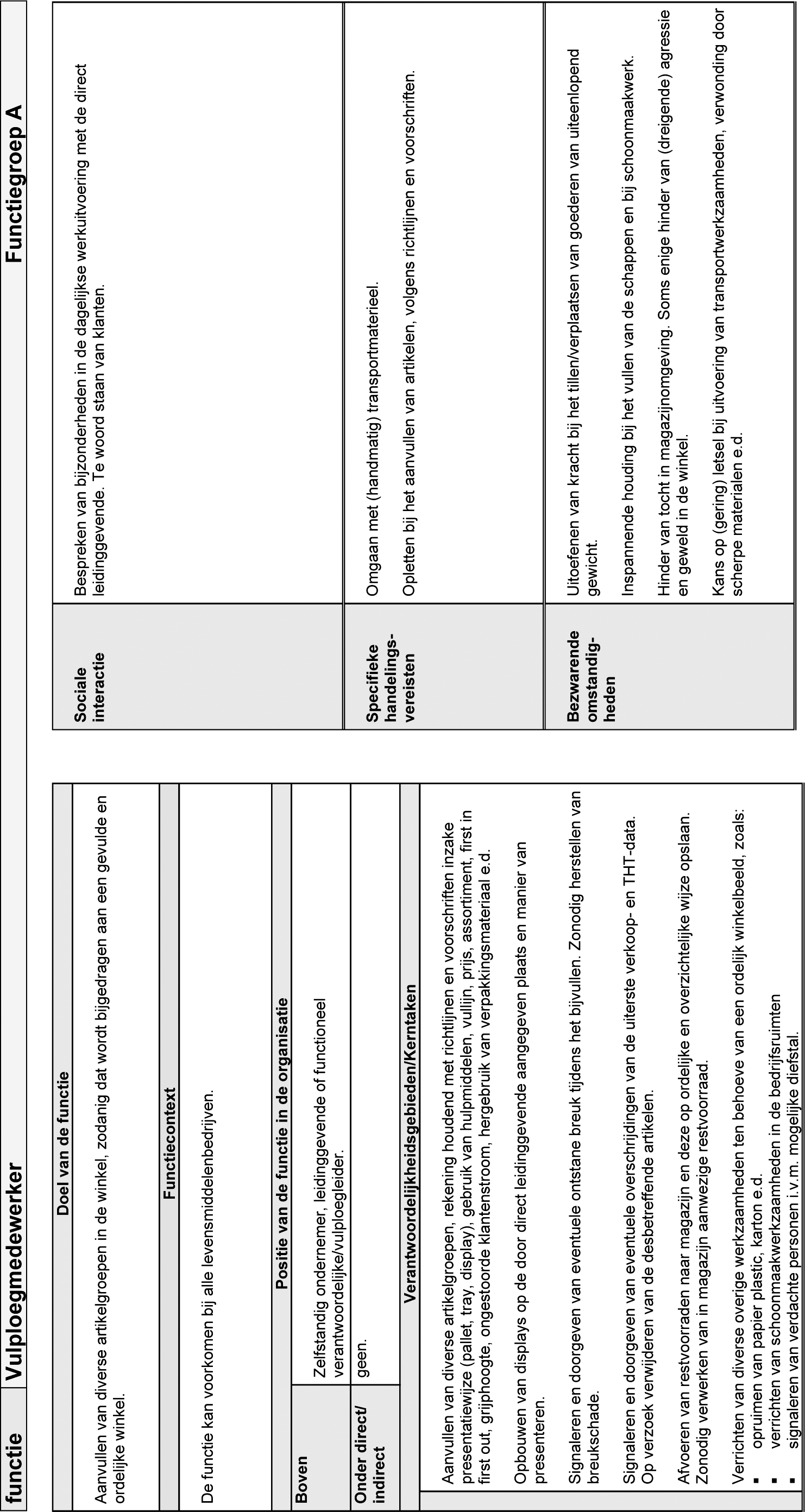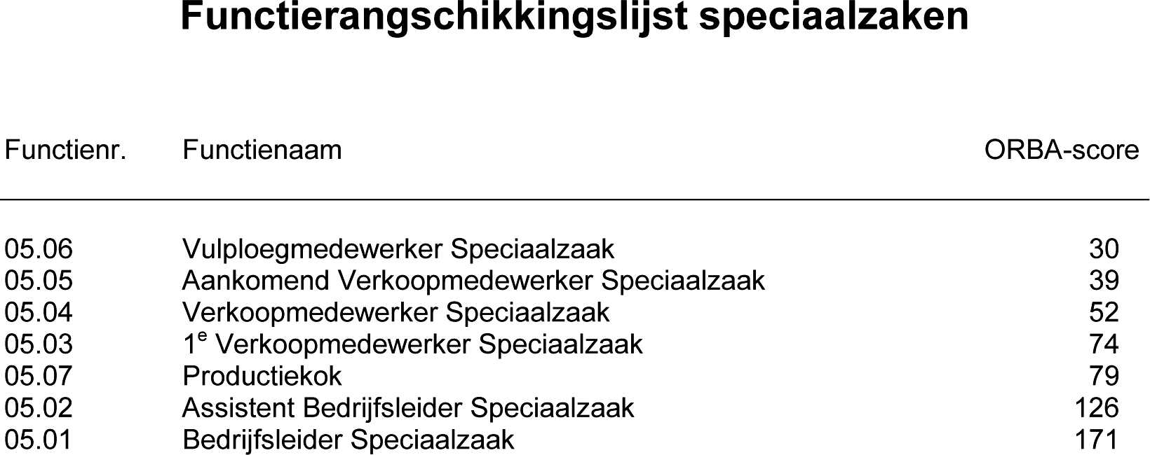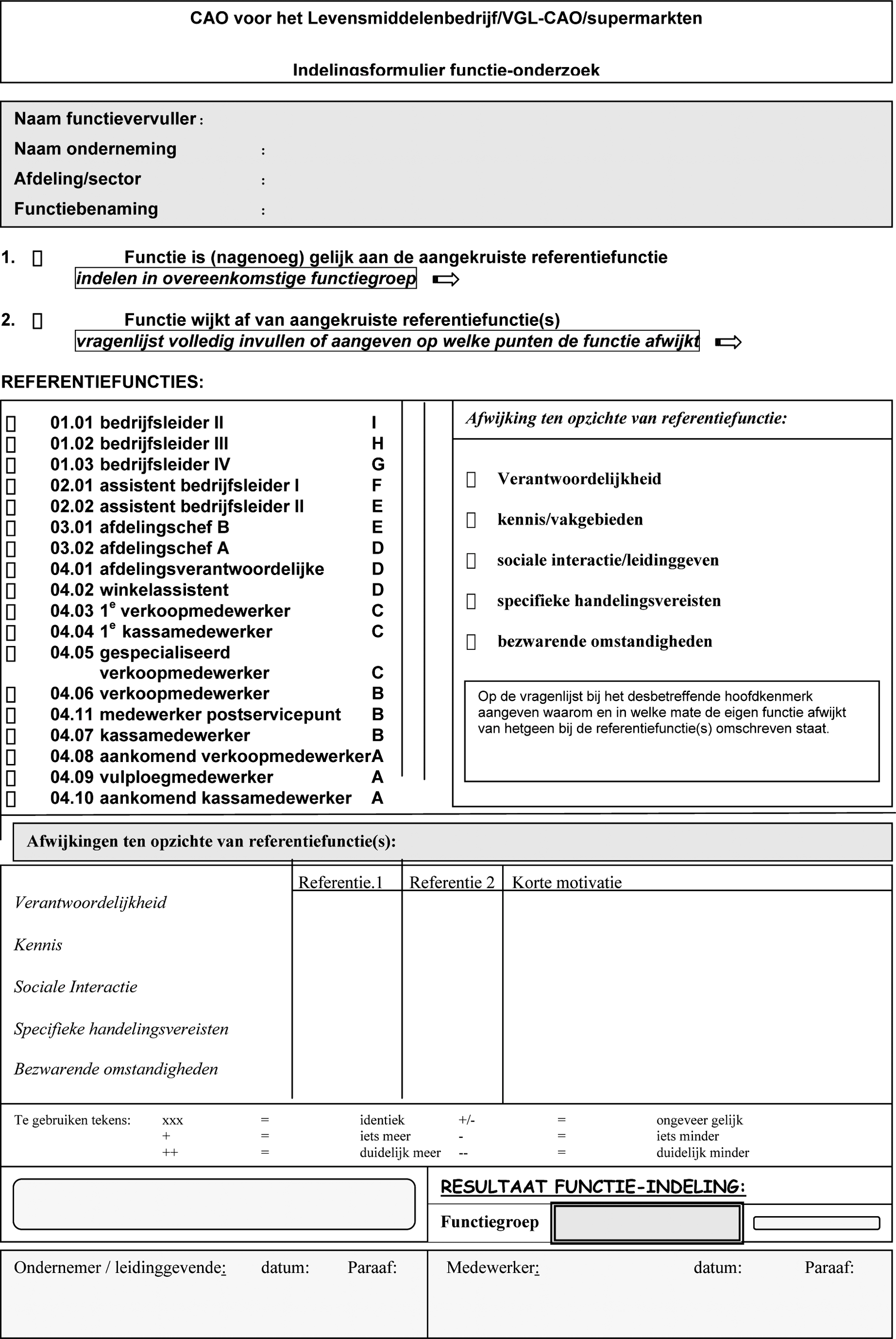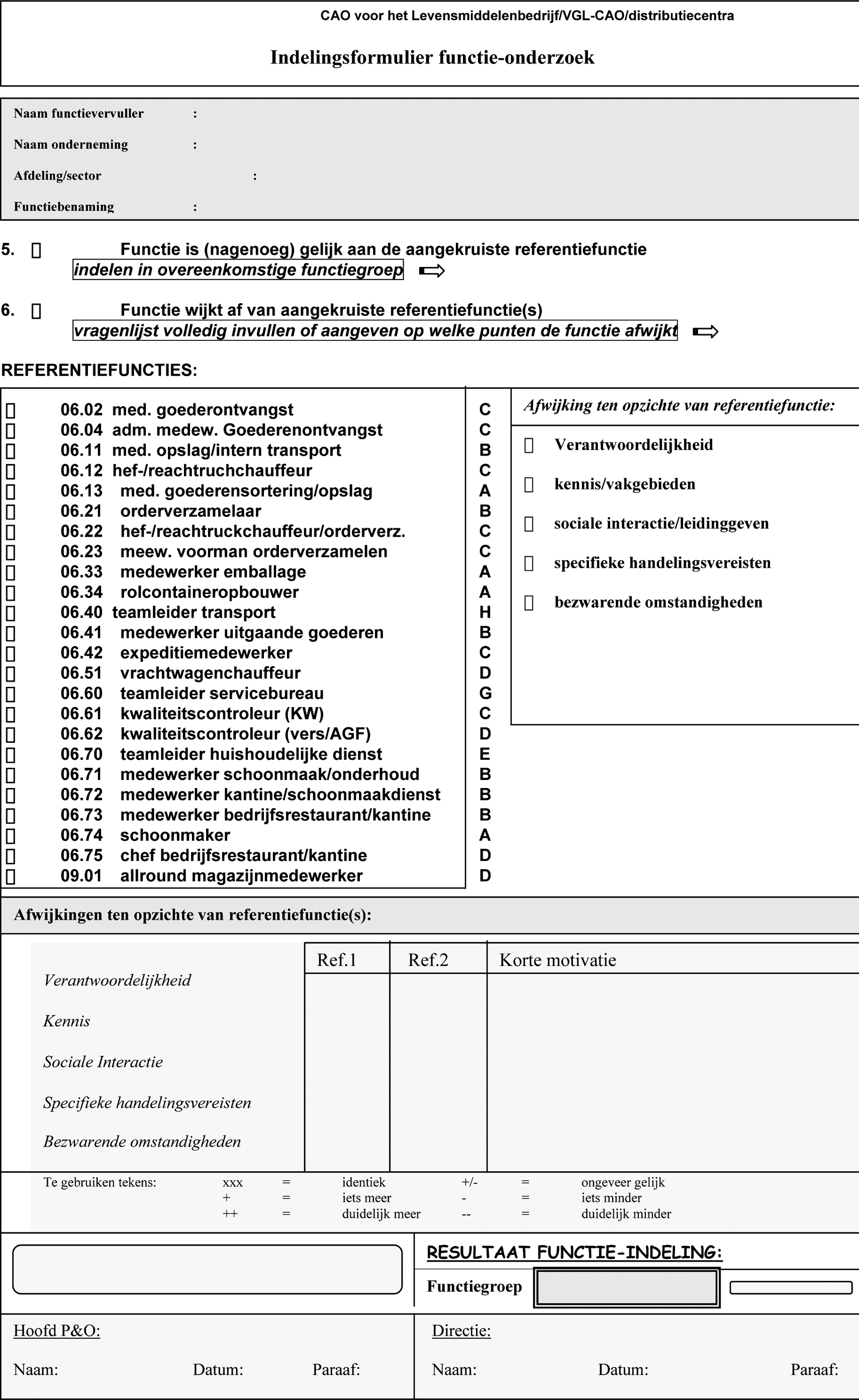 Van elke in een onderneming voorkomende functie moet worden bepaald wat de indeling van deze functie is in de functiegroepenstructuur van de CAO voor het Levensmiddelenbedrijf. Deze indeling komt tot stand door een vergelijking van de in te delen functie met zogenaamde referentie-functies. Deze referentiefuncties zijn onderdeel van dit bij de CAO behorende Handboek Functiewaardering.